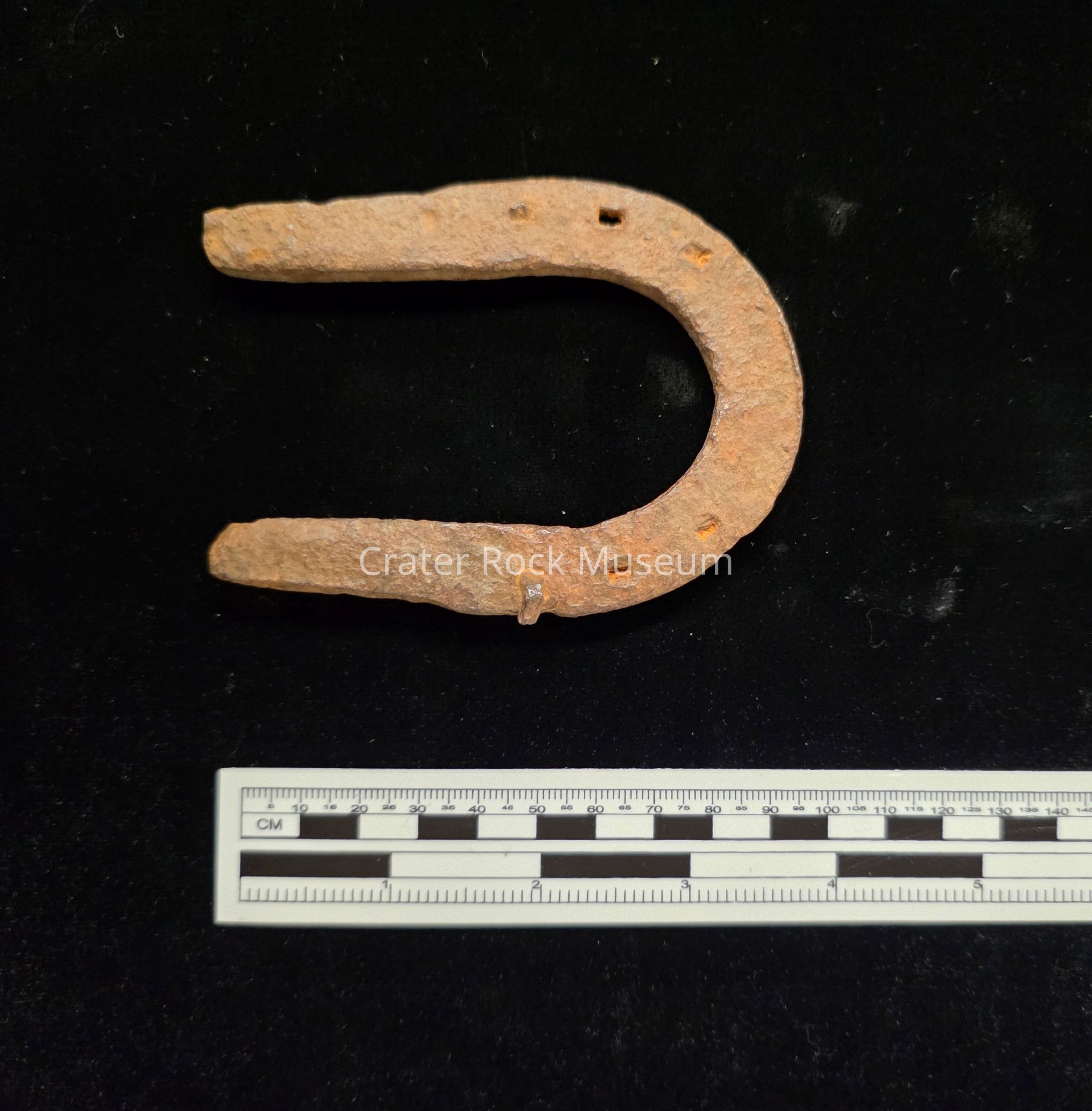 As opposed to the more commonly known horseshoe which has a rounder shape, the shape of this shoe indicates it was made for the thinner, higher set hoof of a mule or donkey.Location
