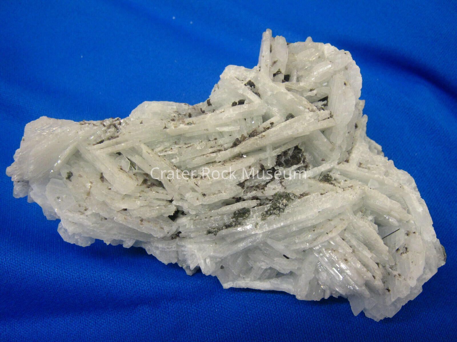 Variety: Albite is a common felspar and is the "pivot" mineral of two different feldspar series. It is most often associated with the plagioclase series where it is an end member of this series. The plagioclase series comprises felspars that range in chemical composition from pure NaAlSi3 O8 to pure CaAl2 Si2 O8 . The various plagioclase feldspars are identified from each other by gradations in index of refraction and density in the absence of chemical analysis and/or optical measurements. Albite is also an end member of the alkali or K-feldspars whose series ranges from pure NaAlSi3 O8 to pure KAlSi3 O8. This series only exists at high temperatures with the mineral sanidine being the potassium, K, rich end member. At lower temperatures, the K-feldspars will seperate from the albite in a process called exsolution. The albite will form layers inside the k-feldspars crystals. Some times these layers are discernable to the naked eye and the stone is referred to as perthite. Albite by definition must contain no less than 90% sodium and no more than 10% of either potassium and/or calcium in the cation position in the crystal structure..Collection