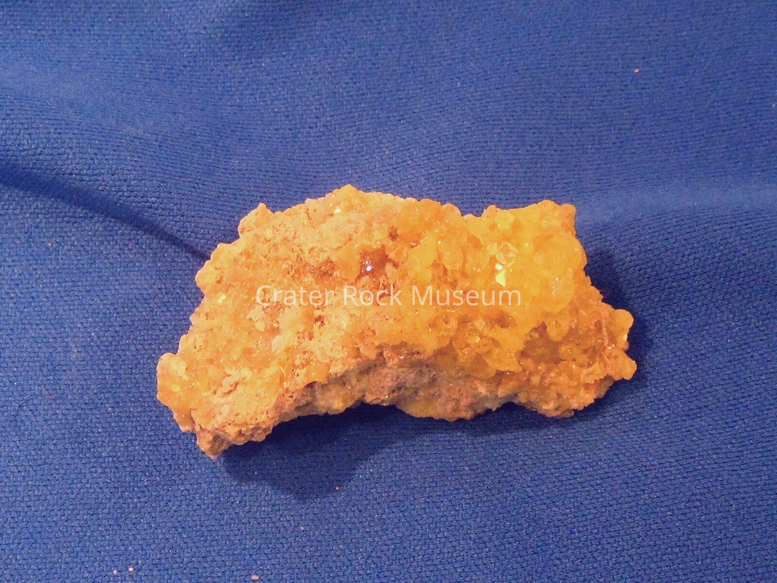 Description: Small specimen with one area of tightly grouped yellow crystals on a light, dull yellow granular matrix with some crystals imbedded within it.