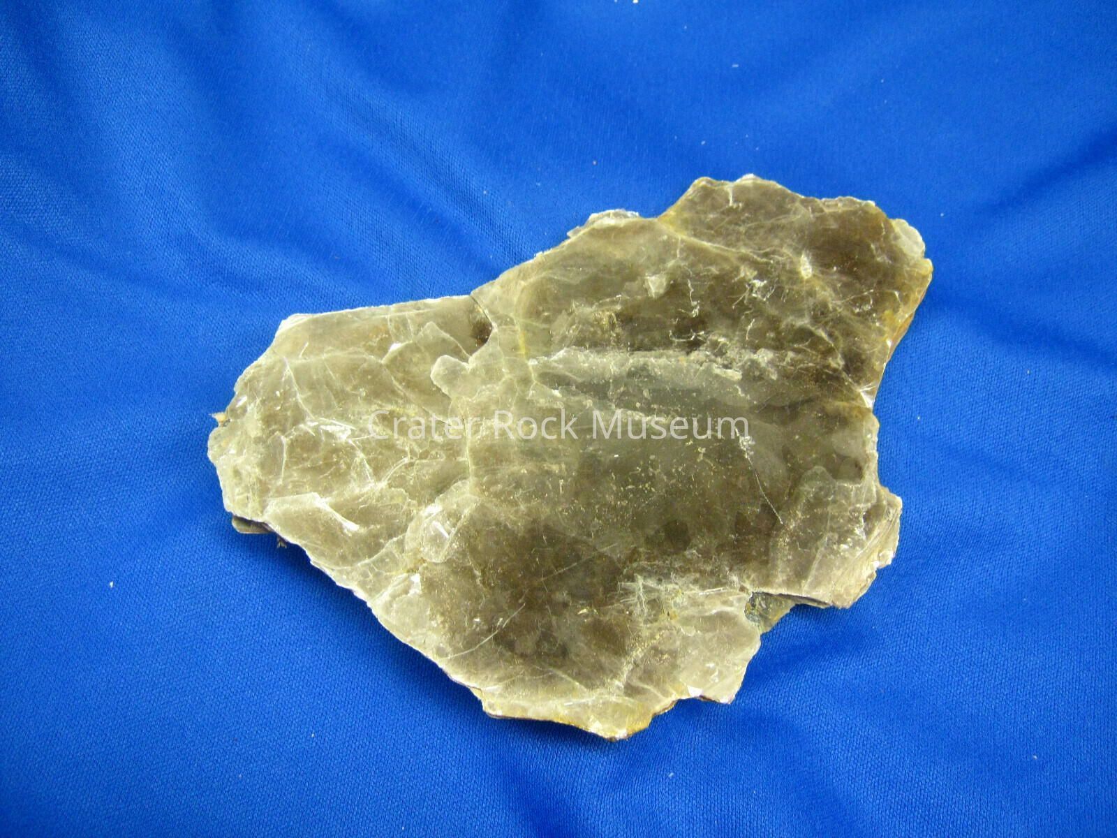 Description: Large, thin layered, translucent sheets, smoky brown in color.