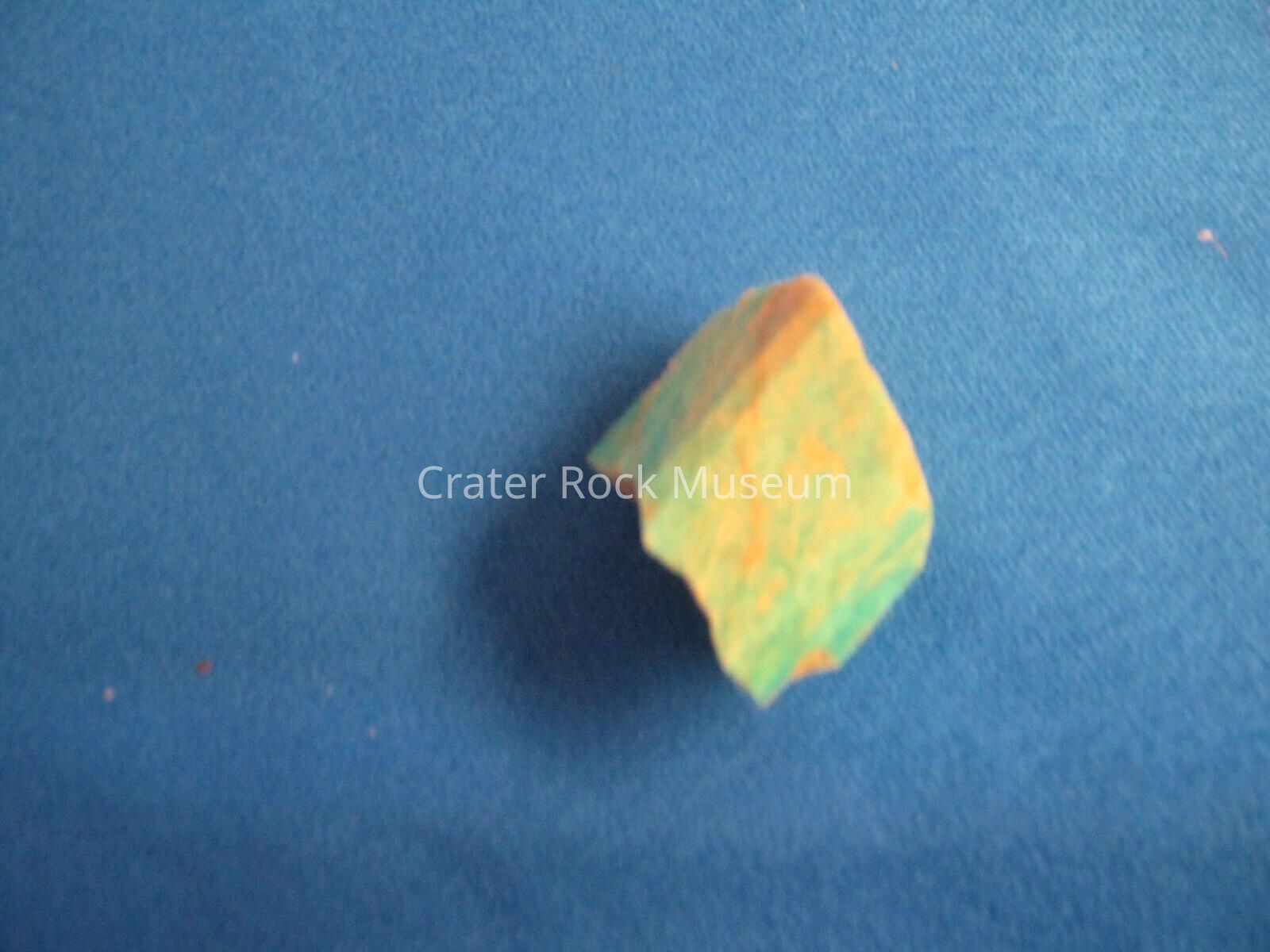 Description: Small angular single crystal, blue-green in color with smooth faces.