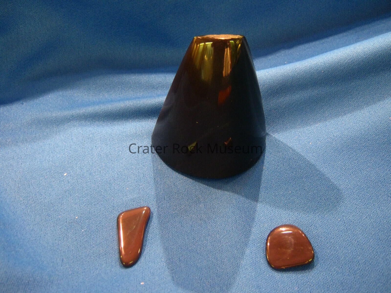 Variety: Obsidian has several varieties. Obsidian can contain small bubbles of air that are aligned along layers created as the molten rock was flowing just before being cooled. These bubbles can produce interesting effects such as a golden sheen, known as Sheen Obsidian or a rainbow sheen called Rainbow Obsidian. Inclusions of small, white, radially clustered crystals of cristobalite in the black glass produce a blotchy or snowflake pattern producing Snowflake Obsidian. Small nuggets of obsidian that have been naturally rounded and smoothed by wind and water are called Apache TearsCollection