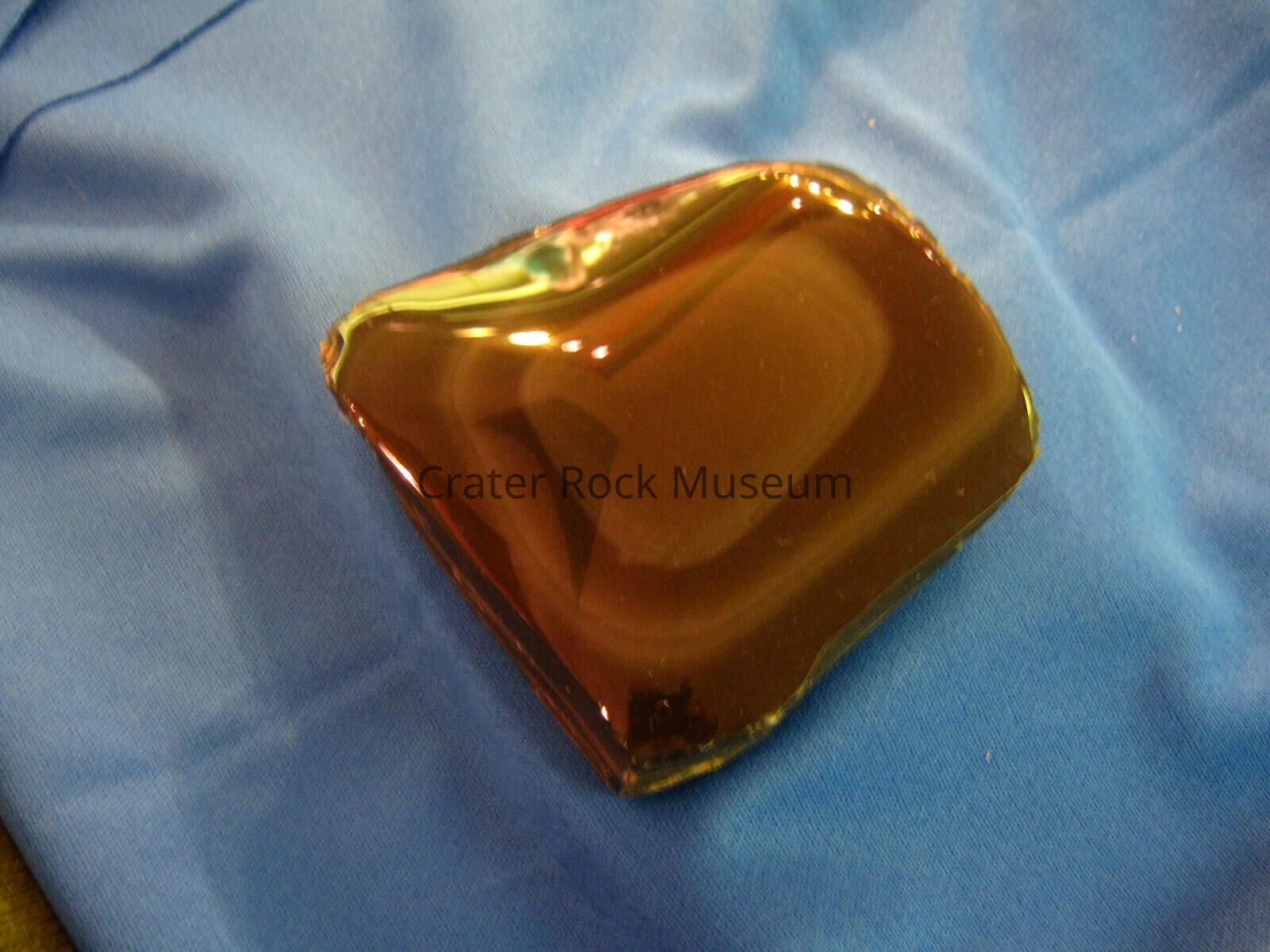 Variety: Obsidian has several varieties. Obsidian can contain small bubbles of air that are aligned along layers created as the molten rock was flowing just before being cooled. These bubbles can produce interesting effects such as a golden sheen, known as Sheen Obsidian or a rainbow sheen called Rainbow Obsidian. Inclusions of small, white, radially clustered crystals of cristobalite in the black glass produce a blotchy or snowflake pattern producing Snowflake Obsidian. Small nuggets of obsidian that have been naturally rounded and smoothed by wind and water are called Apache TearsCollection