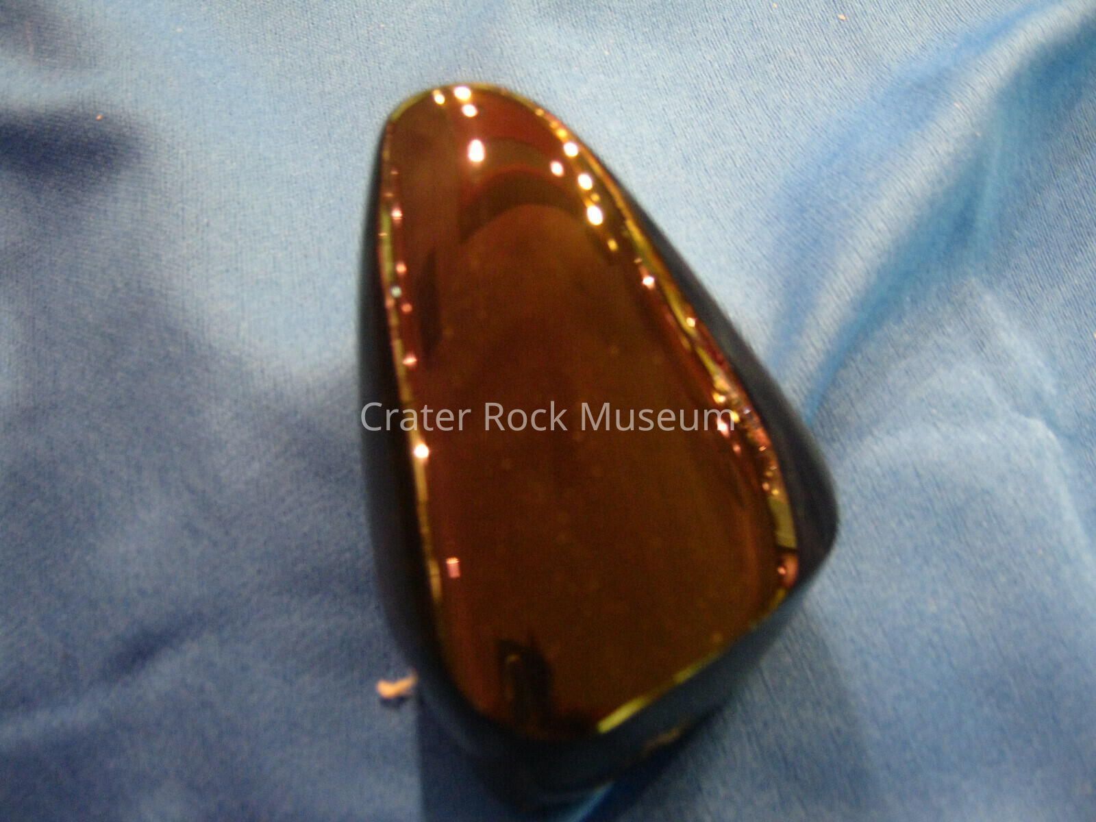 Variety: Obsidian has several varieties. Obsidian can contain small bubbles of air that are aligned along layers created as the molten rock was flowing just before being cooled. These bubbles can produce interesting effects such as a golden sheen, known as Sheen Obsidian or a rainbow sheen called Rainbow Obsidian. Inclusions of small, white, radially clustered crystals of cristobalite in the black glass produce a blotchy or snowflake pattern producing Snowflake Obsidian. Small nuggets of obsidian that have been naturally rounded and smoothed by wind and water are called Apache TearsCollection