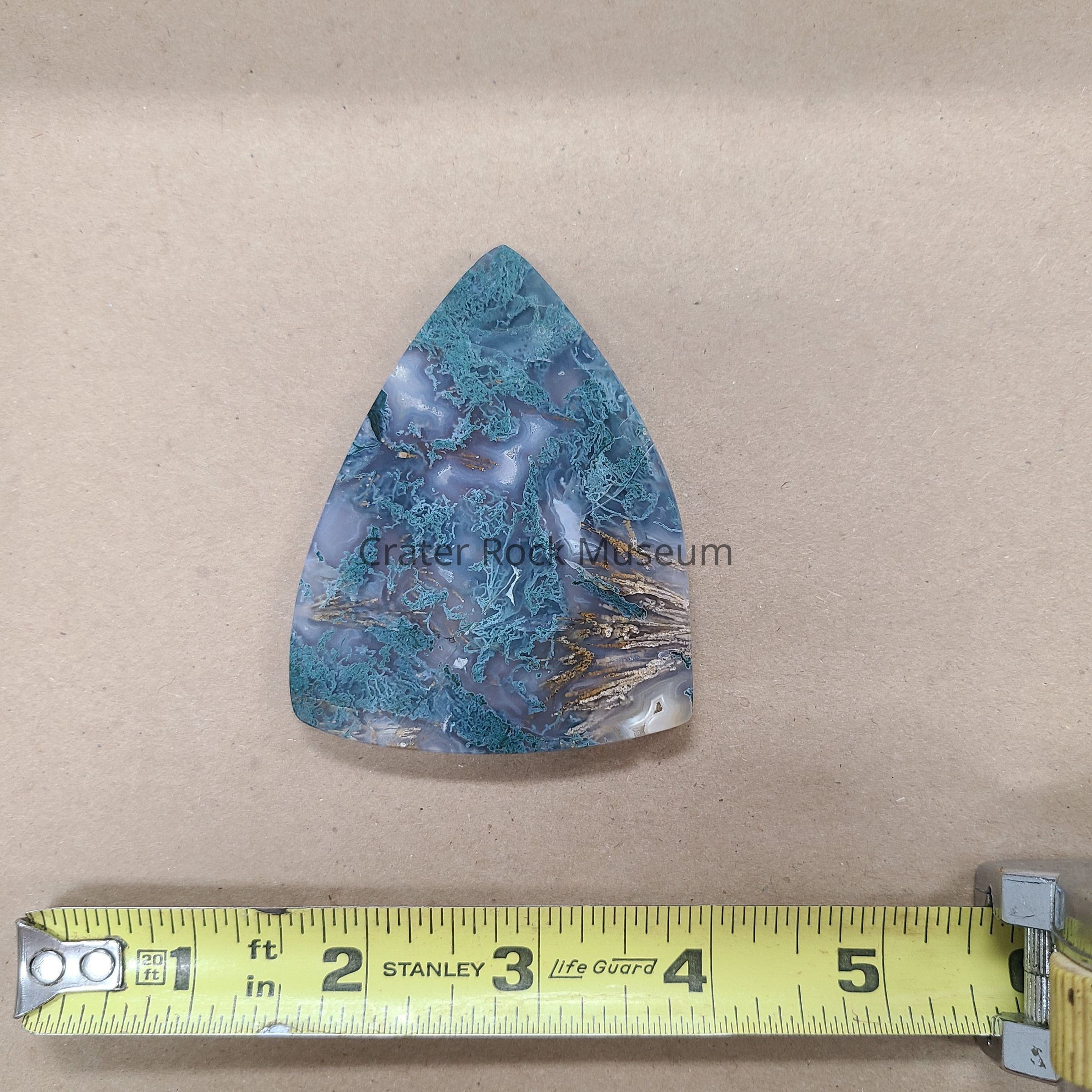 Large blue and green with golden sagenite, roughly triangular shaped cabochon with rounded cornersCollection