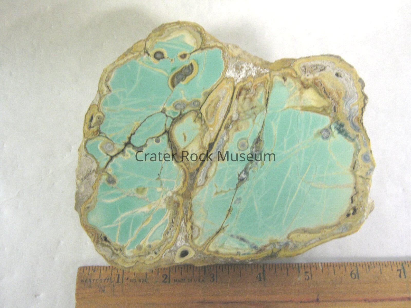 Description: Polished face is a pale green with yellow out line and a beige matrix