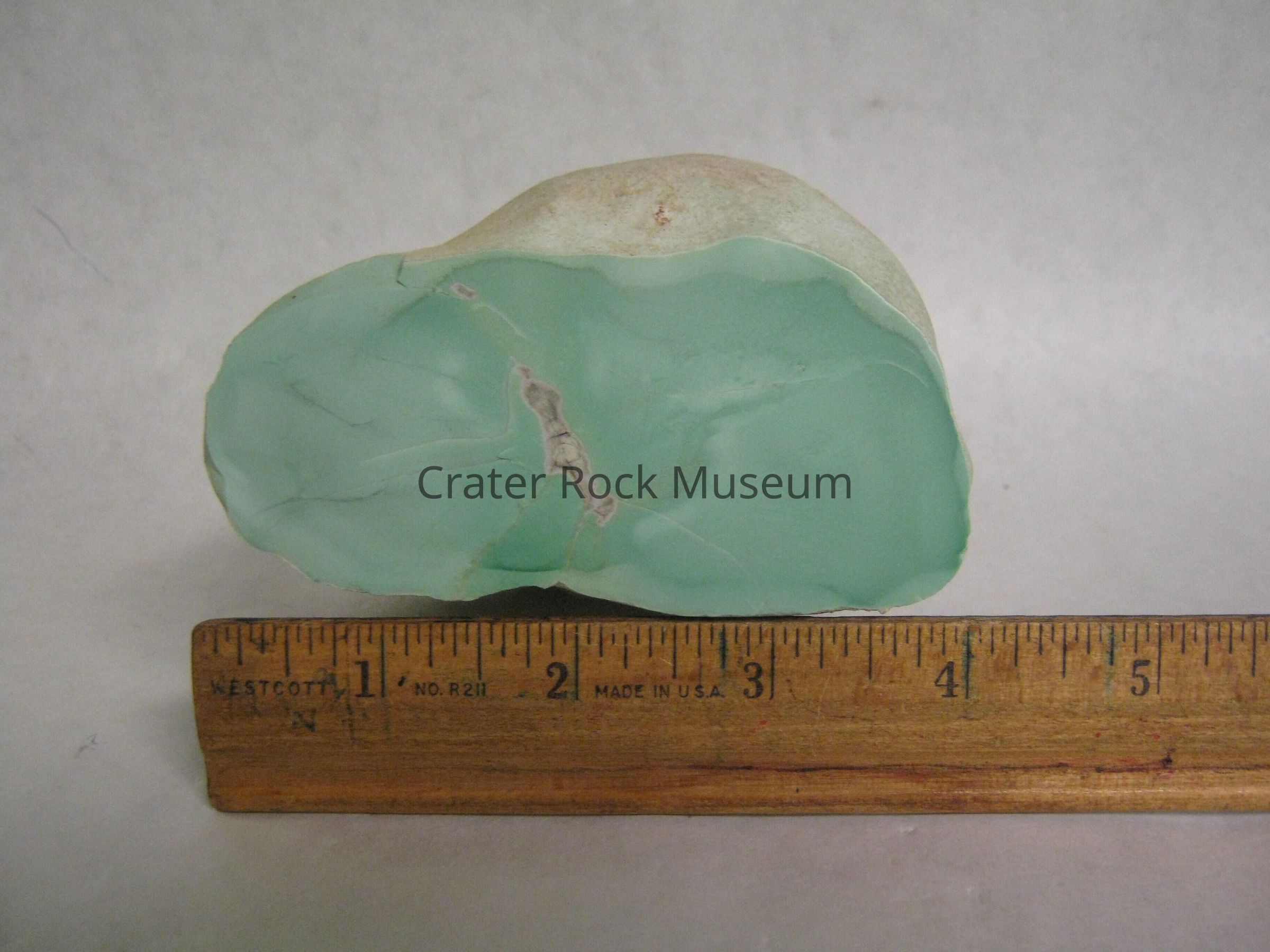 Colors: Cut side shows shades of Green and some White. Outer rock is White.