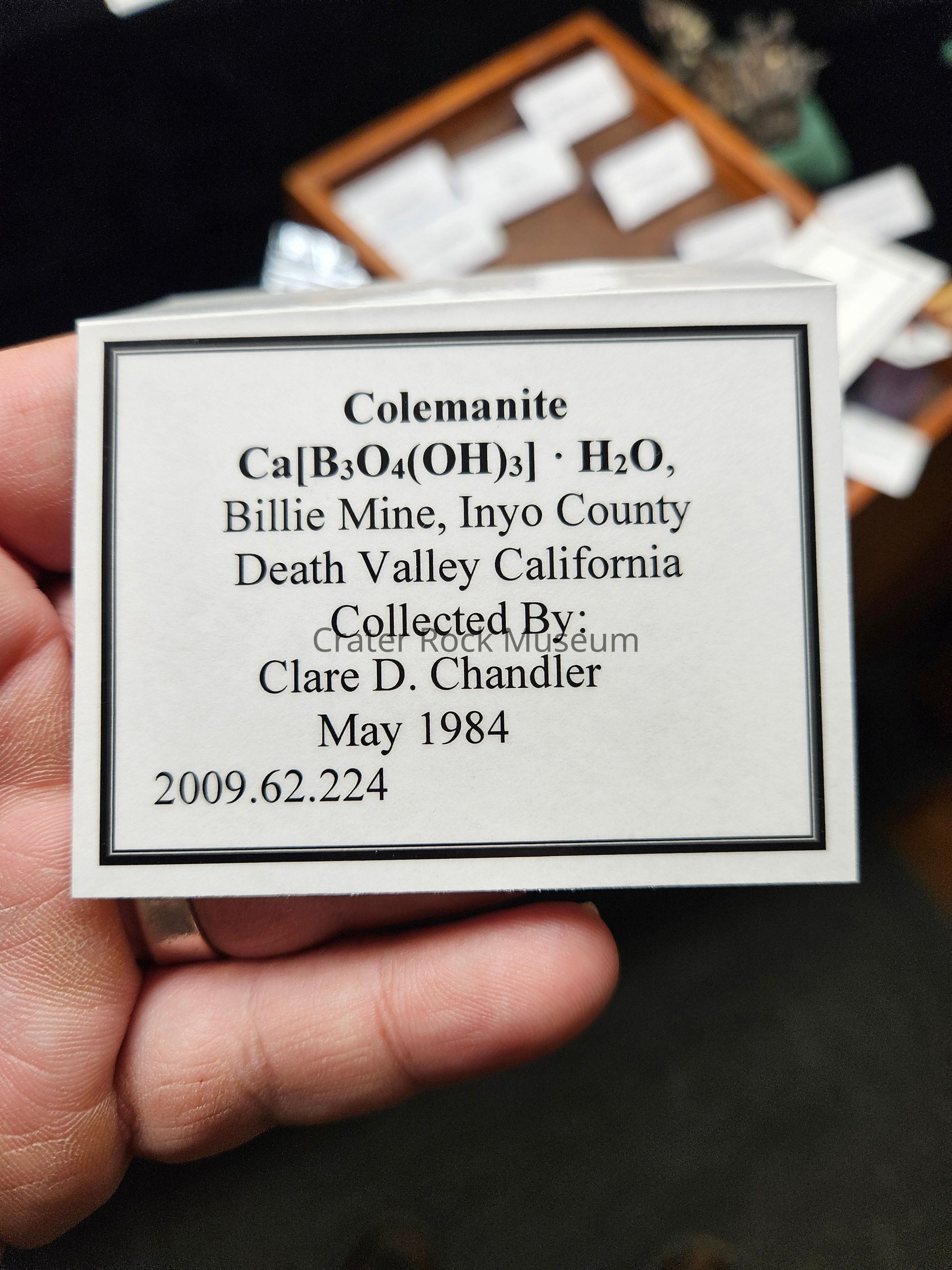 Associated Minerals are calcite, celestite, borax, ulexite, kernite, hydroboracite and other borate minerals.