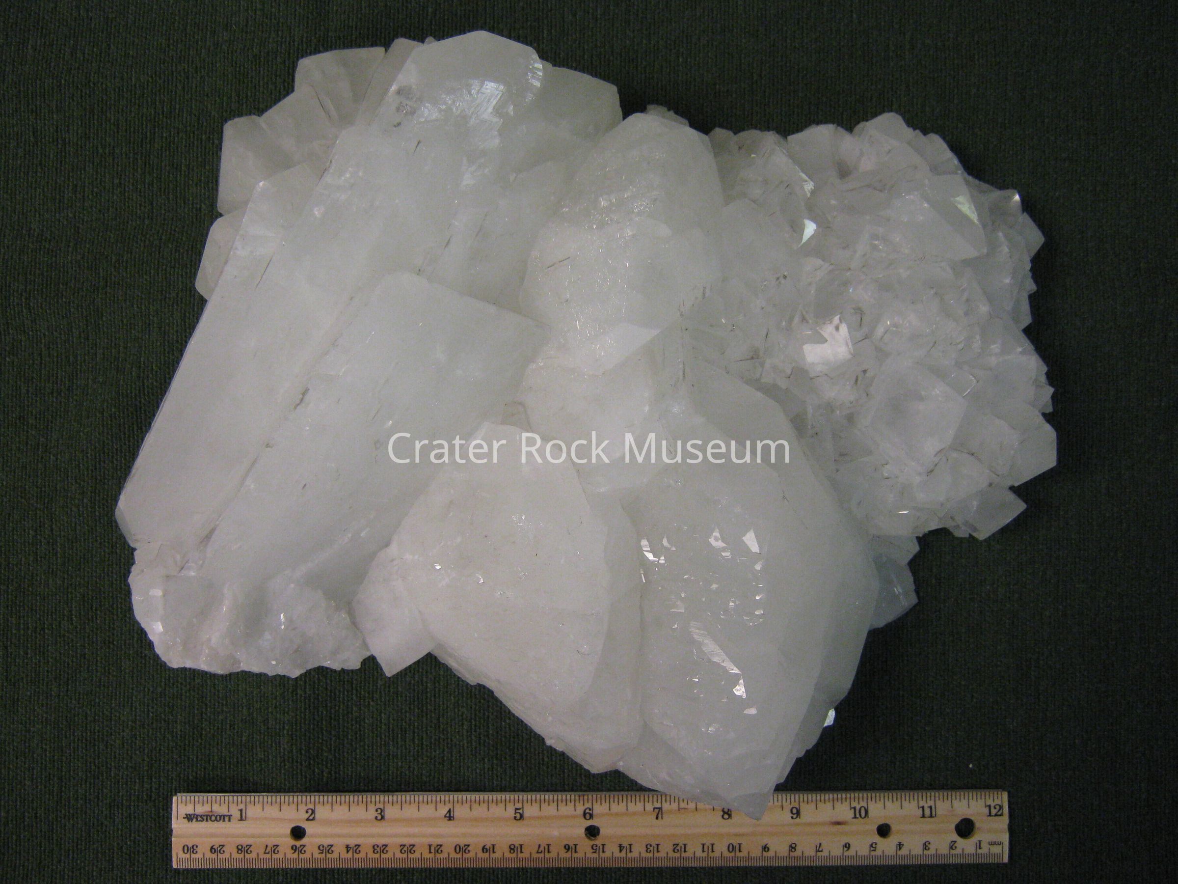 Description: Large white crystals, 1/2" to 6" in layered sections with a section of bunched smaller crystals.