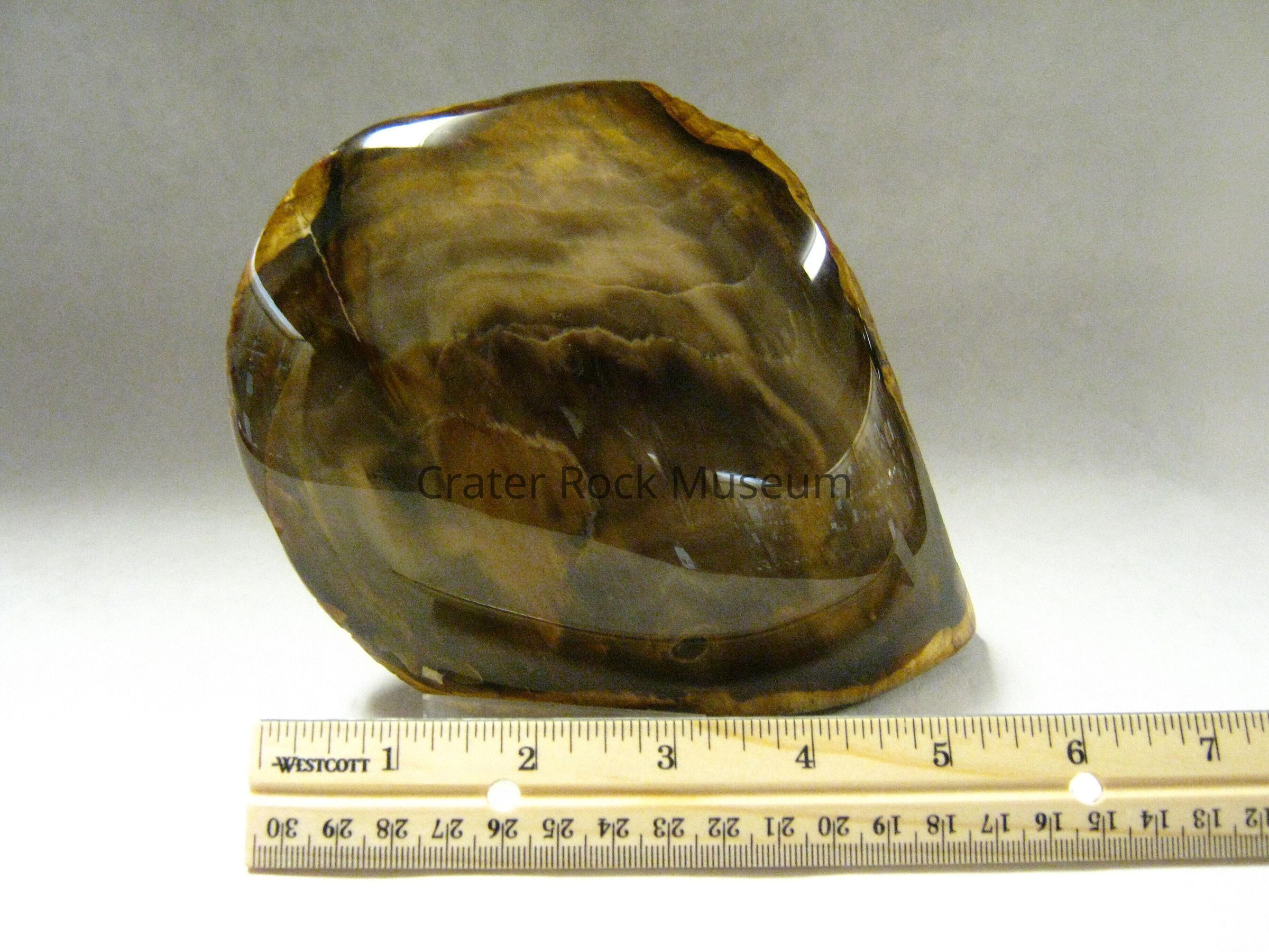 Occurrence: Silicified wood, which is the fossilization and opalization of organic woody matter by the deposation of SiO2 in a anaerobic environment to prevent decay. This means that the wood must somehow be buried in an oxygen free enviroment, possibly in the silt-laden river or the bottom of a lake or buried by volcanic ash.