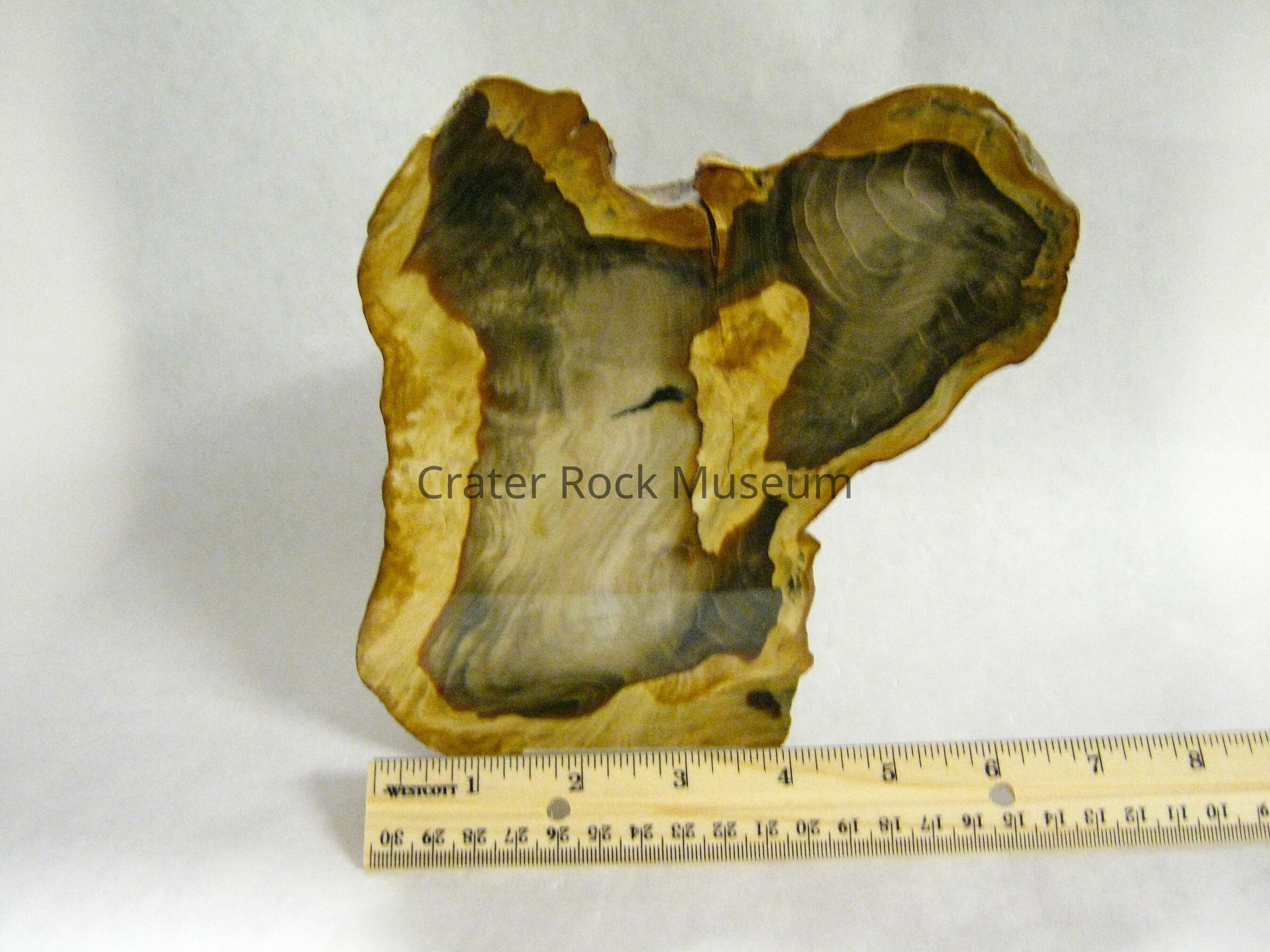 Occurrence: Silicified wood, which is the fossilization and opalization of organic woody matter by the deposation of SiO2 in a anaerobic environment to prevent decay. This means that the wood must somehow be buried in an oxygen free enviroment, possibly in the silt-laden river or the bottom of a lake or buried by volcanic ash.