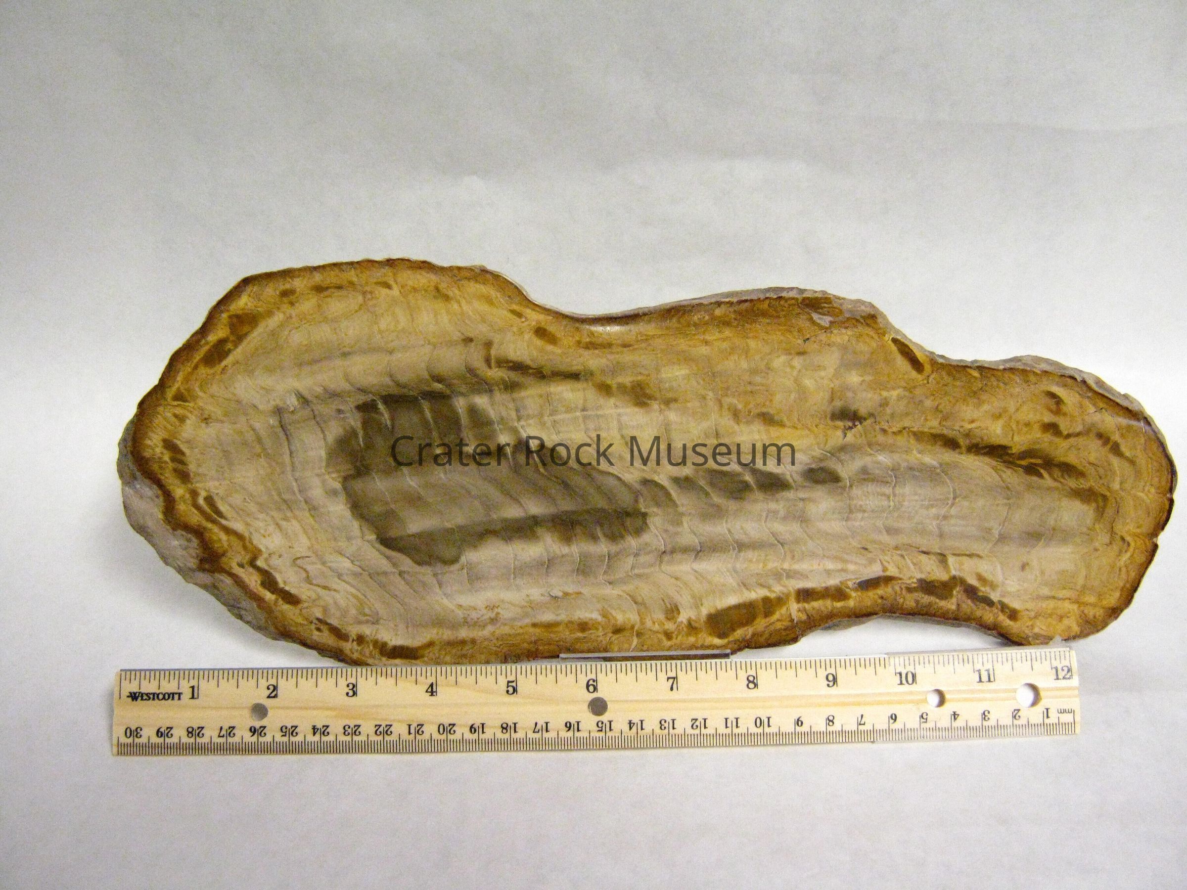 Occurrence: Silicified wood, which is the fossilization and opalization of organic woody matter by the deposition of SiO2 in a anaerobic environment to prevent decay. This means that the wood must somehow be buried in an oxygen free environment, possibly in the silt-laden river or the bottom of a lake or buried by volcanic ash.