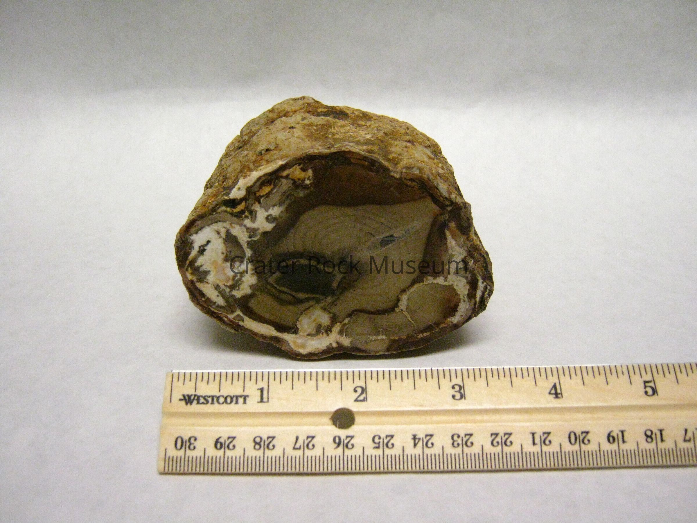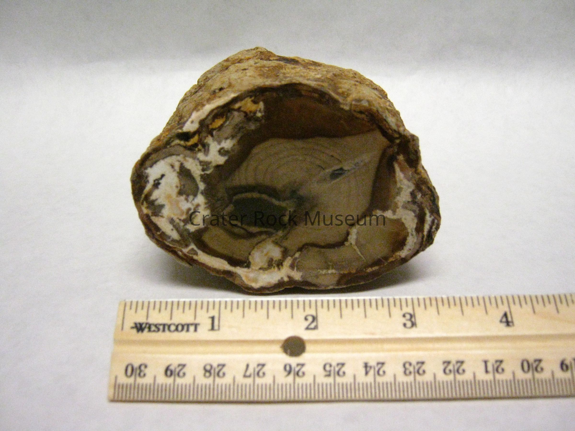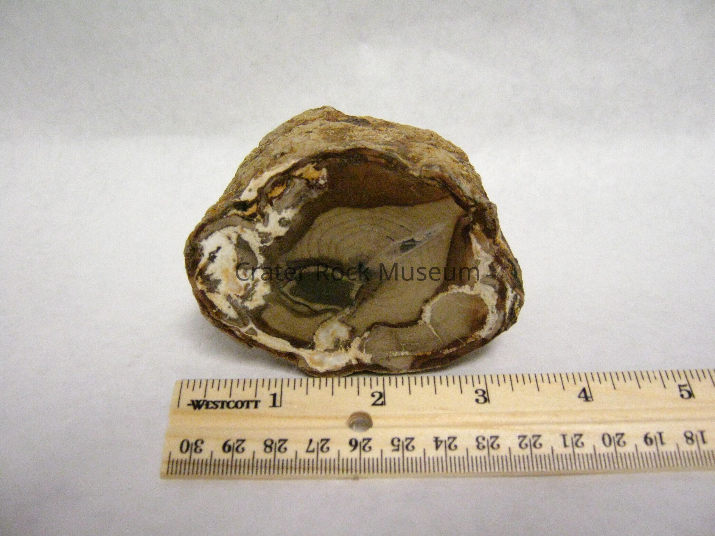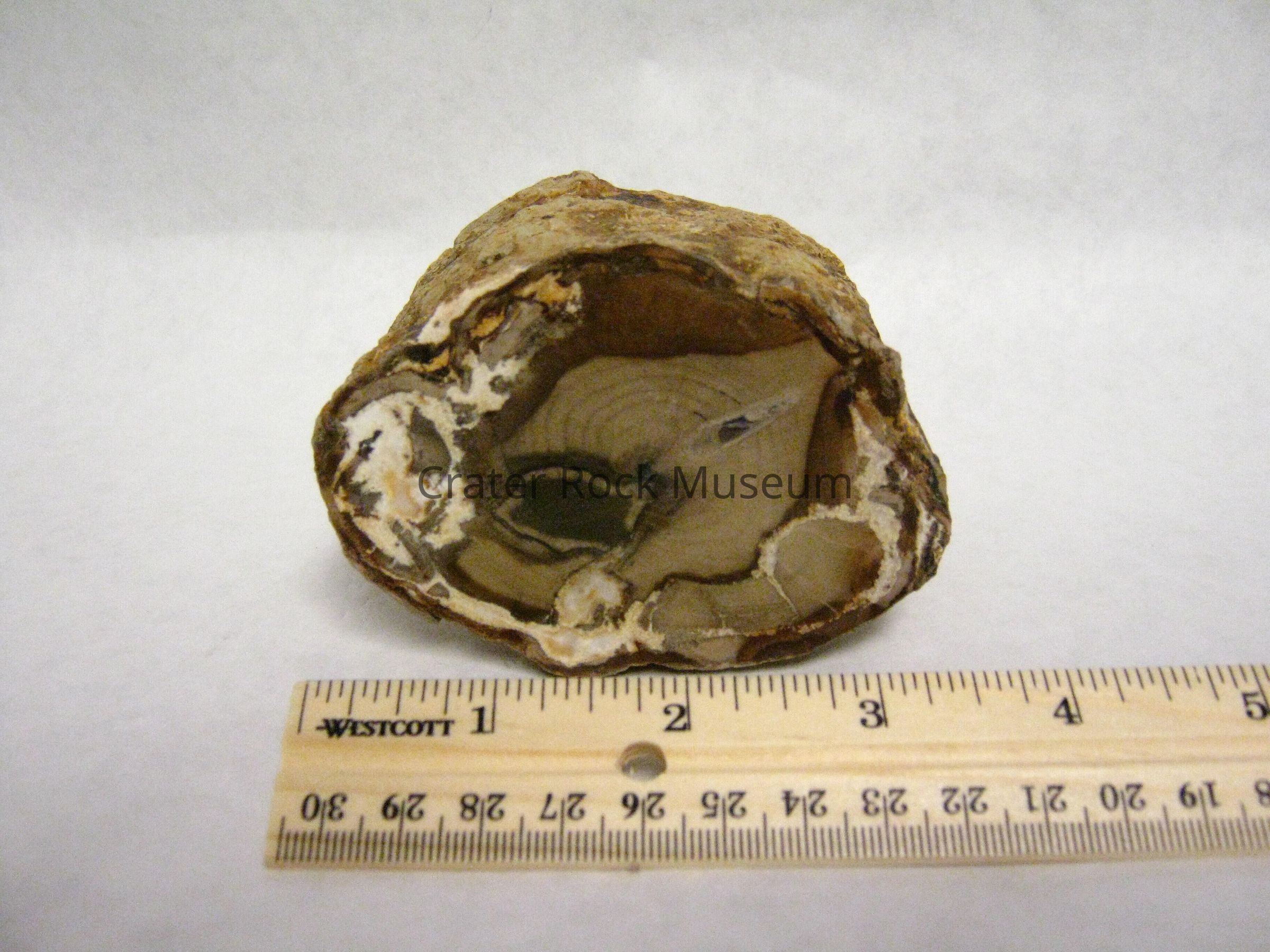 Occurrence: Silicified wood, which is the fossilization and/or opalization of organic woody matter by the deposition of SiO2 in a anaerobic environment to prevent decay. This means that the wood must somehow be buried in an oxygen free enviroment, possibly in the silt-laden river or the bottom of a lake or buried by volcanic ash or volcanic related mudflow. The organic material in the wood is then replaced by silica, other minerals determined the colors of the petrified wood.