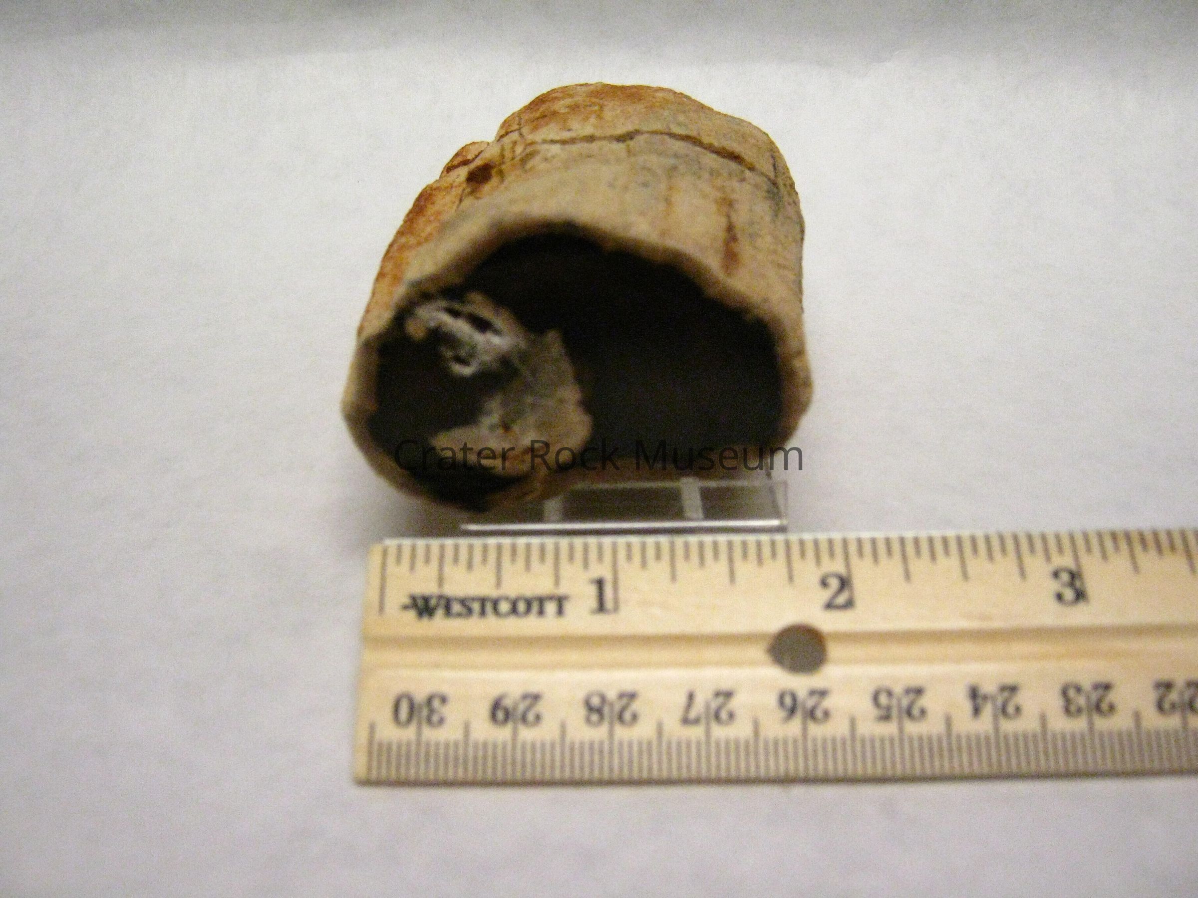 Occurrence: Silicified wood, which is the fossilization and/or opalization of organic woody matter by the deposition of SiO2 in a anaerobic environment to prevent decay. This means that the wood must somehow be buried in an oxygen free enviroment, possibly in the silt-laden river or the bottom of a lake or buried by volcanic ash or volcanic related mudflow. The organic material in the wood is then replaced by silica, other minerals determined the colors of the petrified wood.