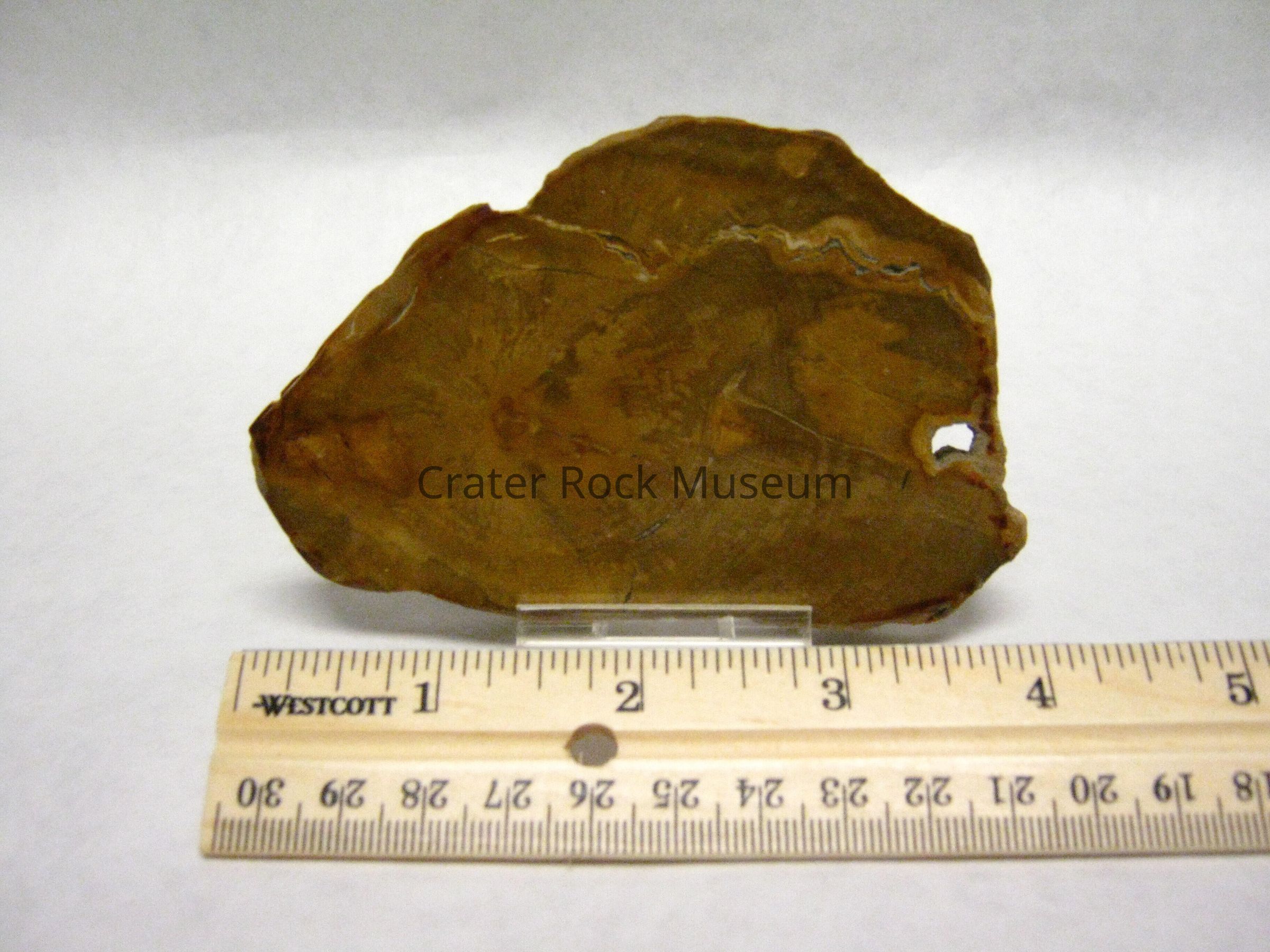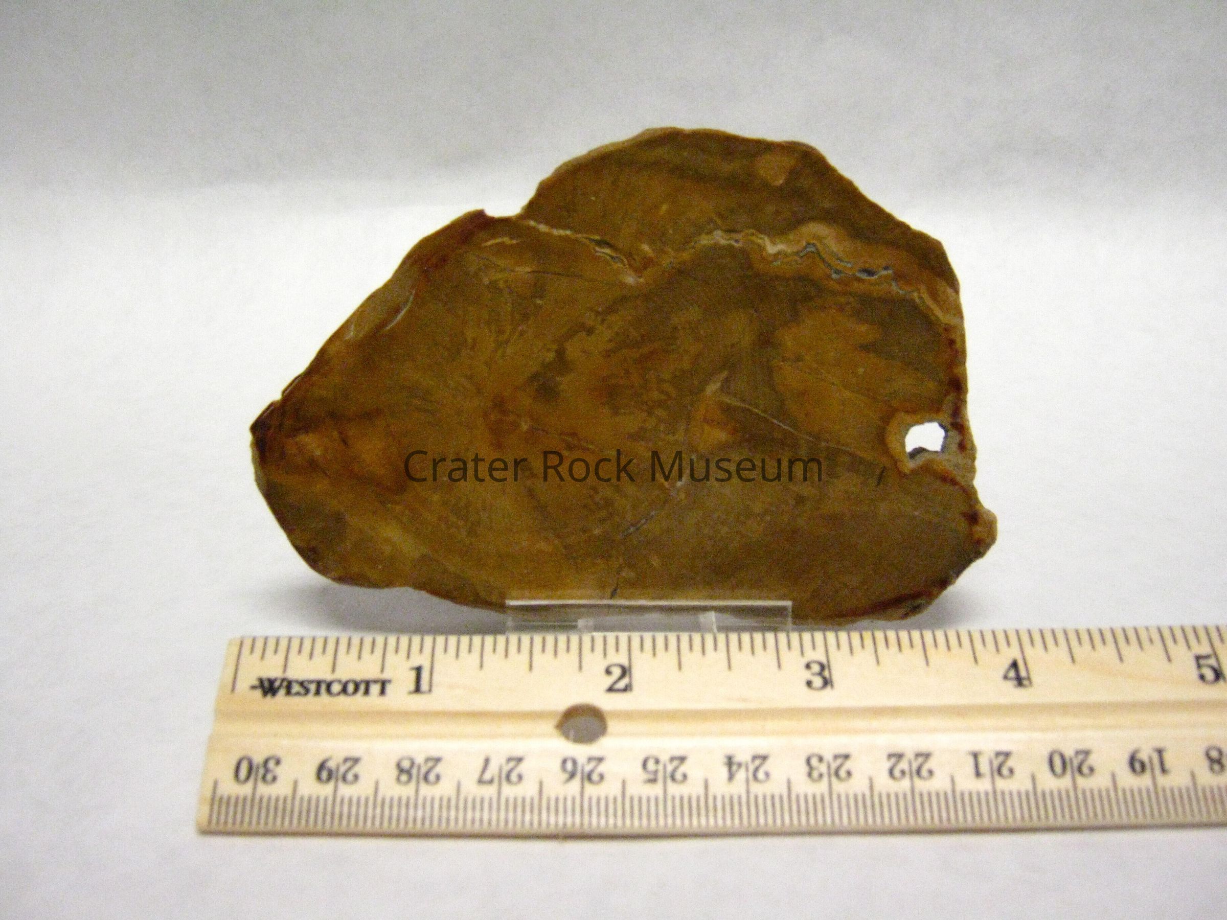 Occurrence: Silicified wood, which is the fossilization and/or opalization of organic woody matter by the deposition of SiO2 in a anaerobic environment to prevent decay. This means that the wood must somehow be buried in an oxygen free enviroment, possibly in the silt-laden river or the bottom of a lake or buried by volcanic ash or volcanic related mudflow. The organic material in the wood is then replaced by silica, other minerals determined the colors of the petrified wood.