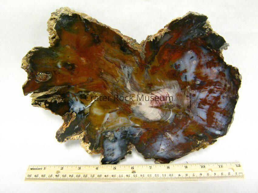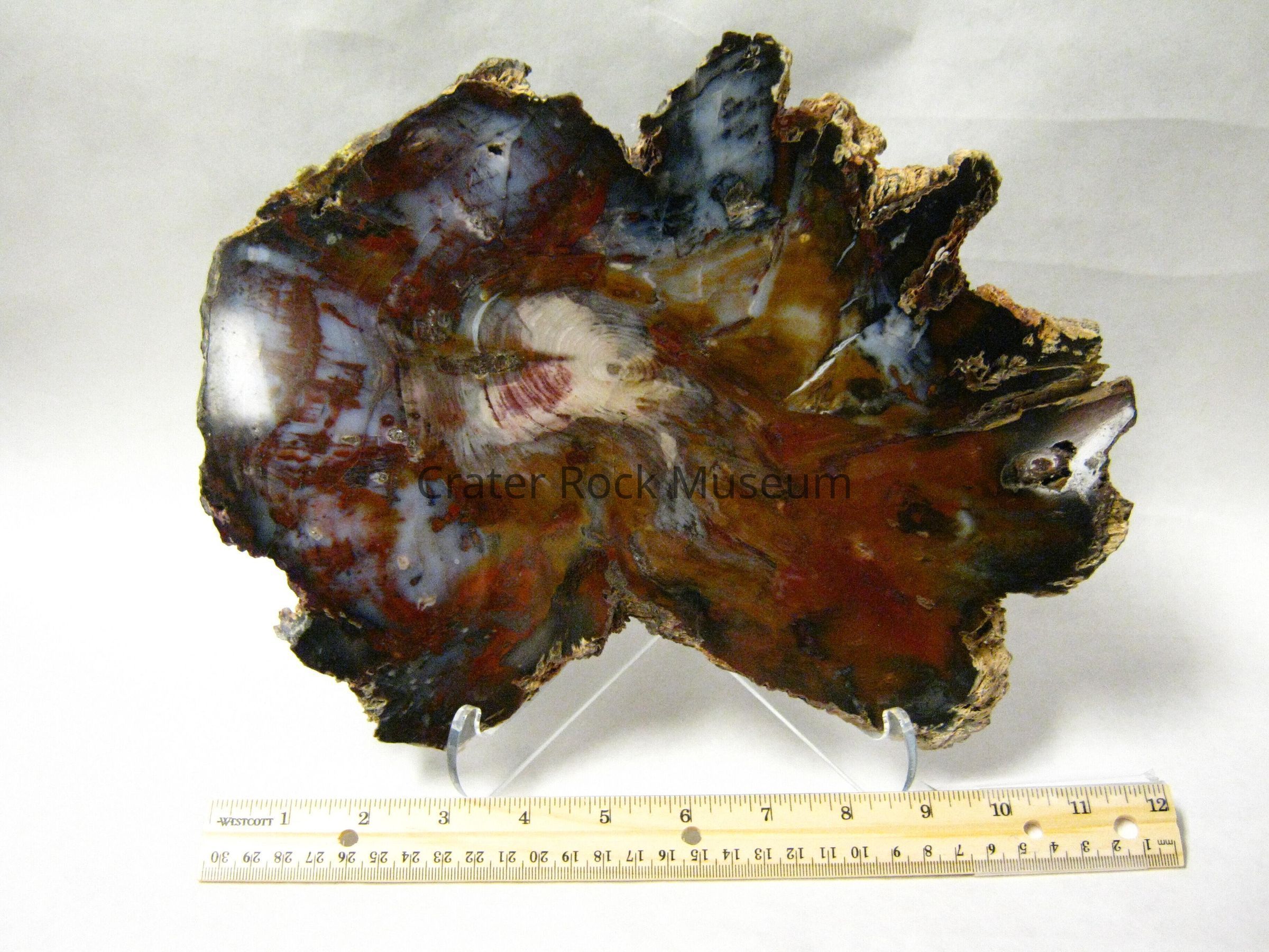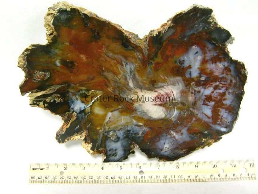Occurrence: Silicified wood, which is the fossilization and/or opalization of organic woody matter by the deposition of SiO2 in a anaerobic environment to prevent decay. This means that the wood must somehow be buried in an oxygen free enviroment, possibly in the silt-laden river or the bottom of a lake or buried by volcanic ash or volcanic related mudflow. The organic material in the wood is then replaced by silica, other minerals determined the colors of the petrified wood.