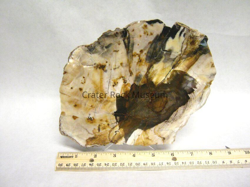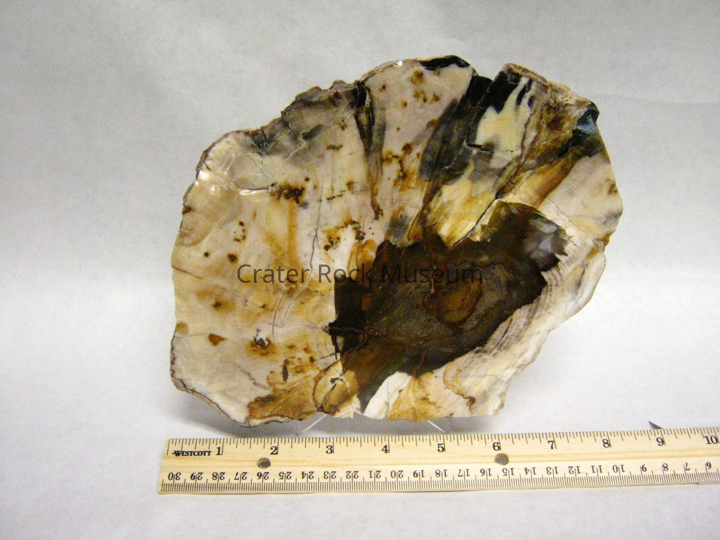 Occurrence: Silicified wood, which is the fossilization and/or opalization of organic woody matter by the deposition of SiO2 in a anaerobic environment to prevent decay. This means that the wood must somehow be buried in an oxygen free enviroment, possibly in the silt-laden river or the bottom of a lake or buried by volcanic ash or volcanic related mudflow. The organic material in the wood is then replaced by silica, other minerals determined the colors of the petrified wood.