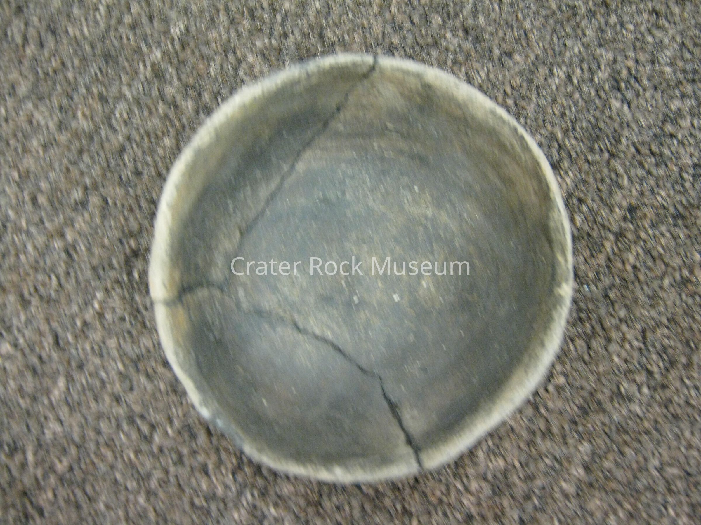 Description: Clay bowl (diameter 4") inner-side & outer-side has a pattern no glaze and is a brownish color. The bowl has several cracks, it may have been glued back together.Collection