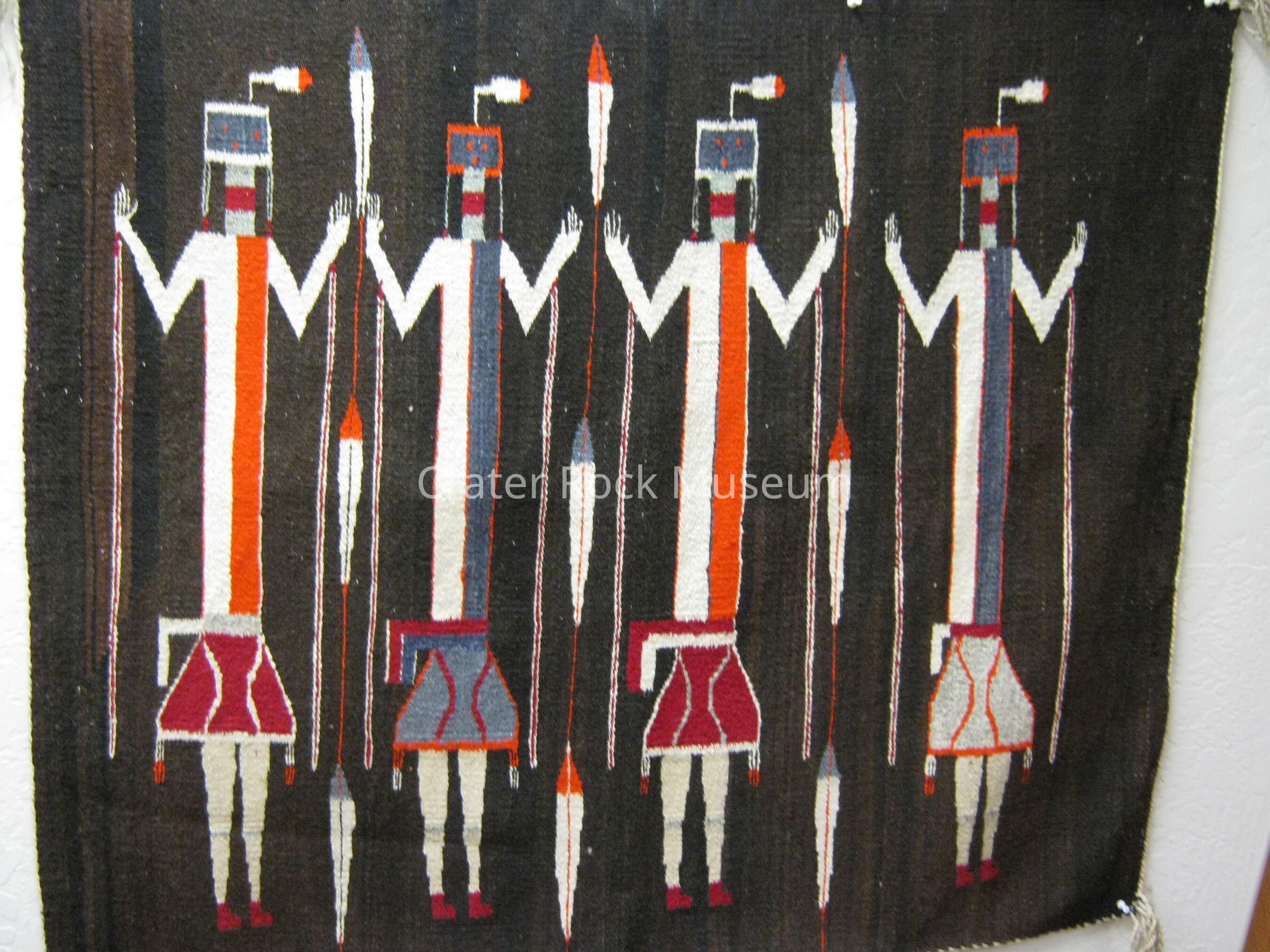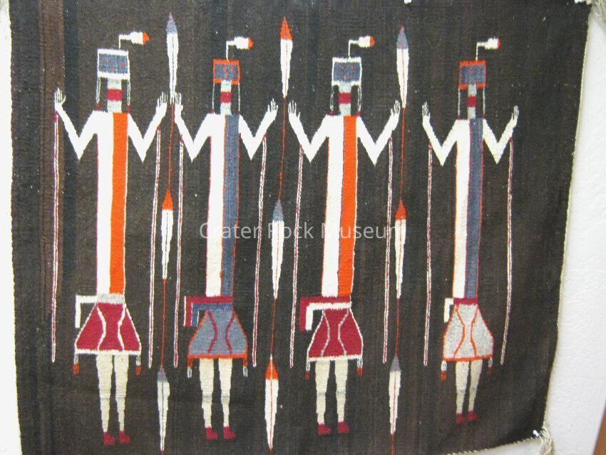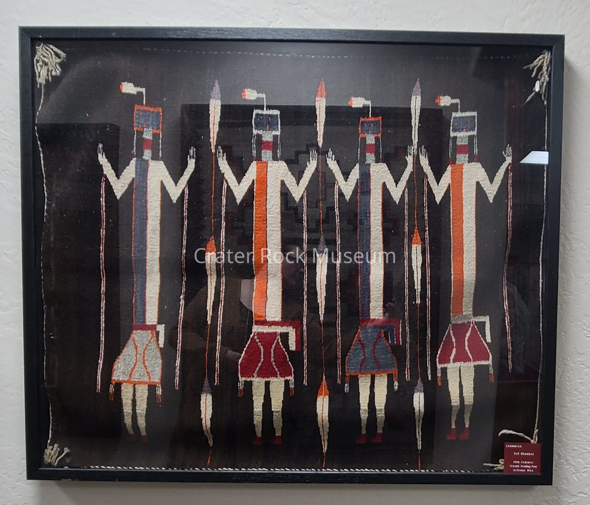 Description: Brown blanket with multi-colored figures on (this is a pattern of orange, red, gray and white people going across the blanket ) size 36" x 42"Collection