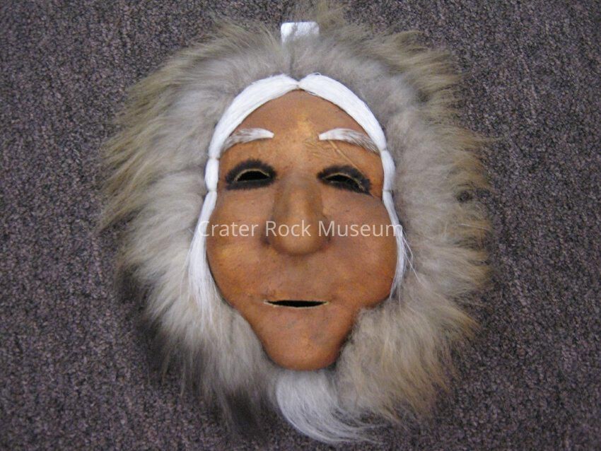 Description: This mask is the face of the mother and is made from several type of animals (7' x 5")Collection