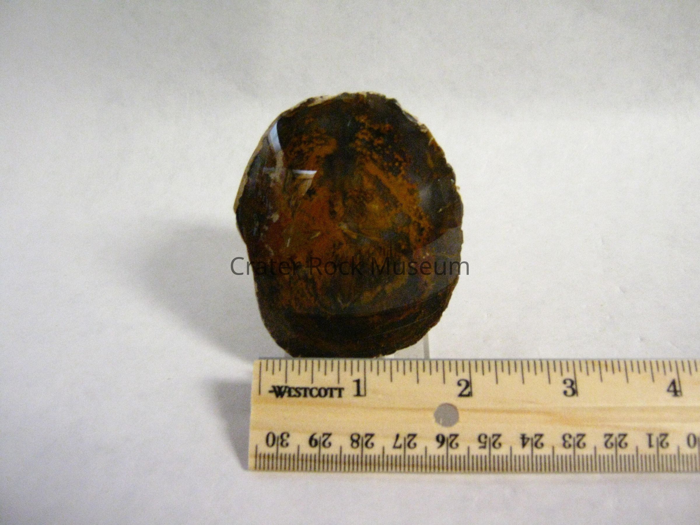 Occurrence: Silicified wood, which is the fossilization and/or opalization of organic woody matter by the deposition of SiO2 in a anaerobic environment to prevent decay. This means that the wood must somehow be buried in an oxygen free enviroment, possibly in the silt-laden river or the bottom of a lake or buried by volcanic ash or volcanic related mudflow. The organic material in the wood is then replaced by silica, other minerals determined the colors of the petrified wood.