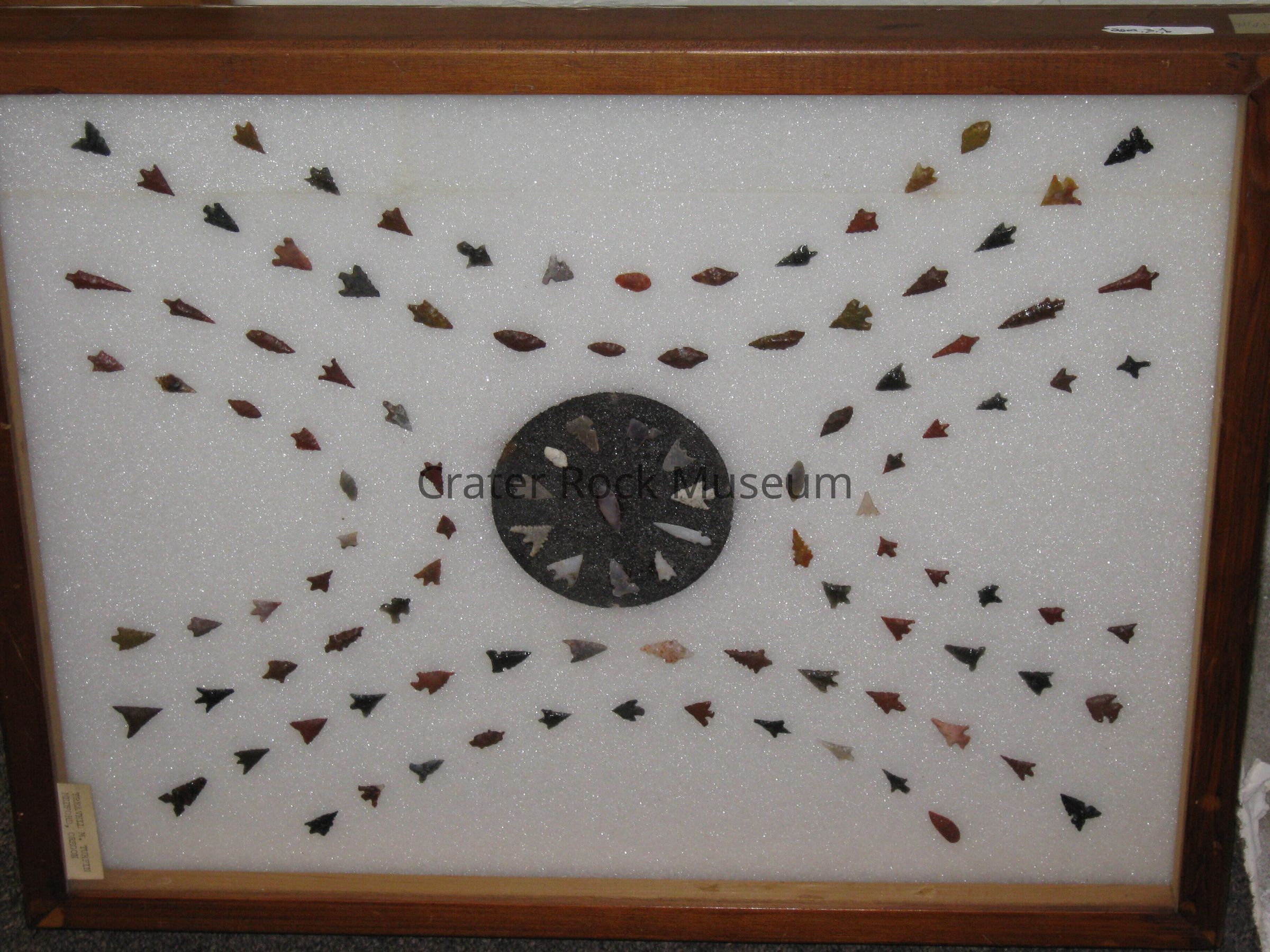 Description: Framed multi-colored small arrowhead points arranaged in a frame pointing in a circle