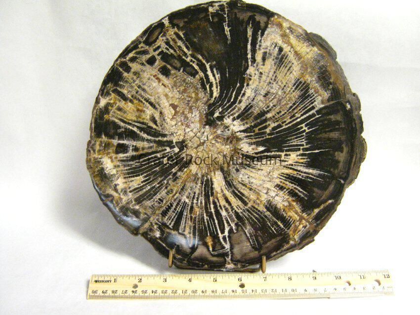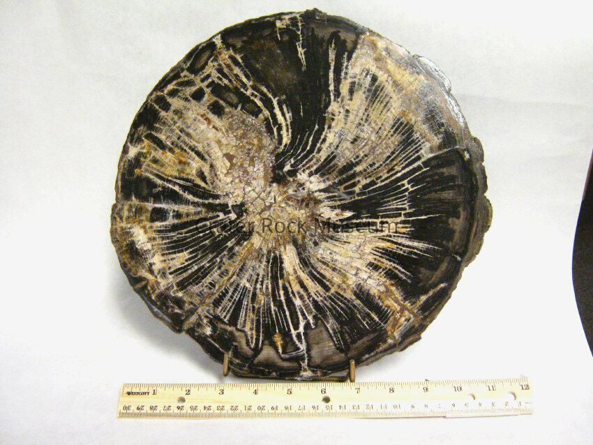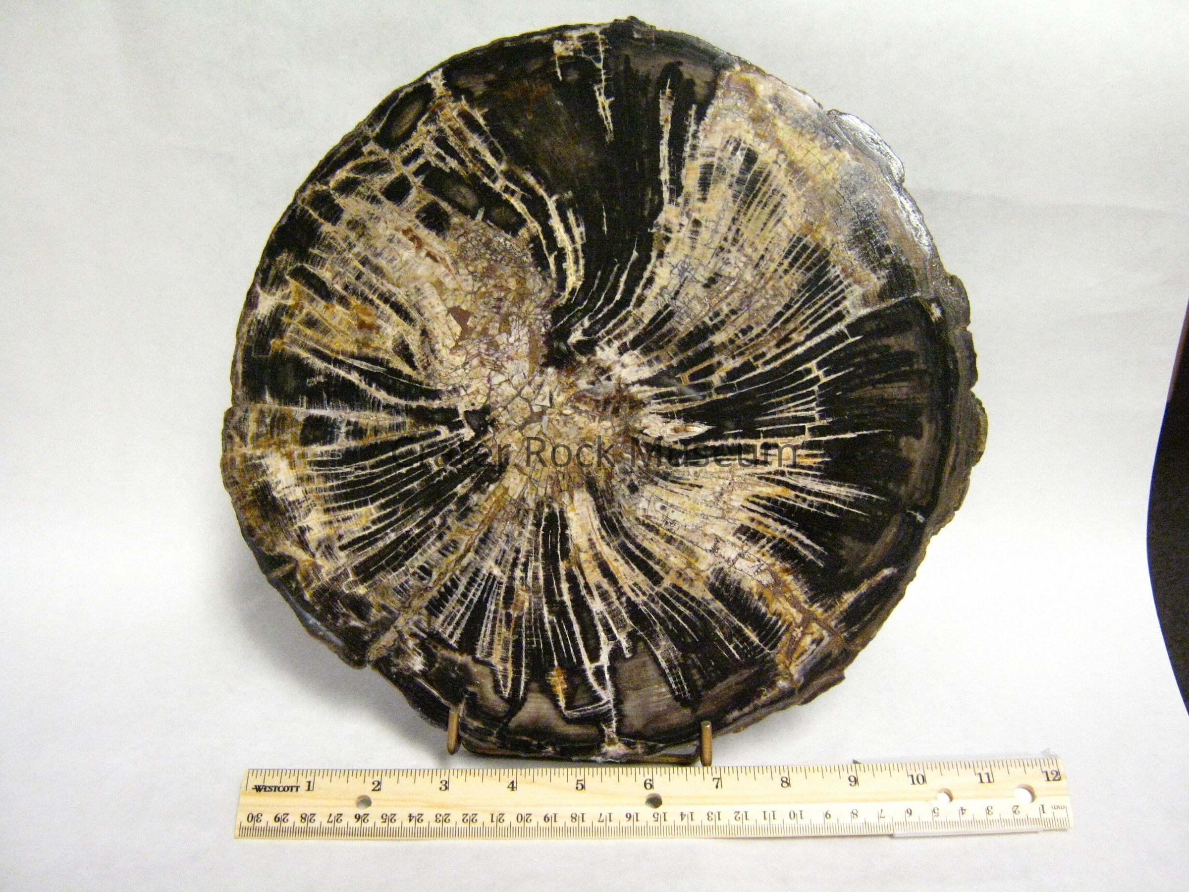 Occurrence: Silicified wood, which is the fossilization and opalization of organic woody matter by the deposition of SiO2 in a anaerobic environment to prevent decay. This means that the wood must somehow be buried in an oxygen free enviroment, possibly in the silt-laden river or the bottom of a lake or buried by volcanic ash or related volcanic mudflow. The organic material in the wood is then replaced by silica (SiO2), other minerals determined its colors.