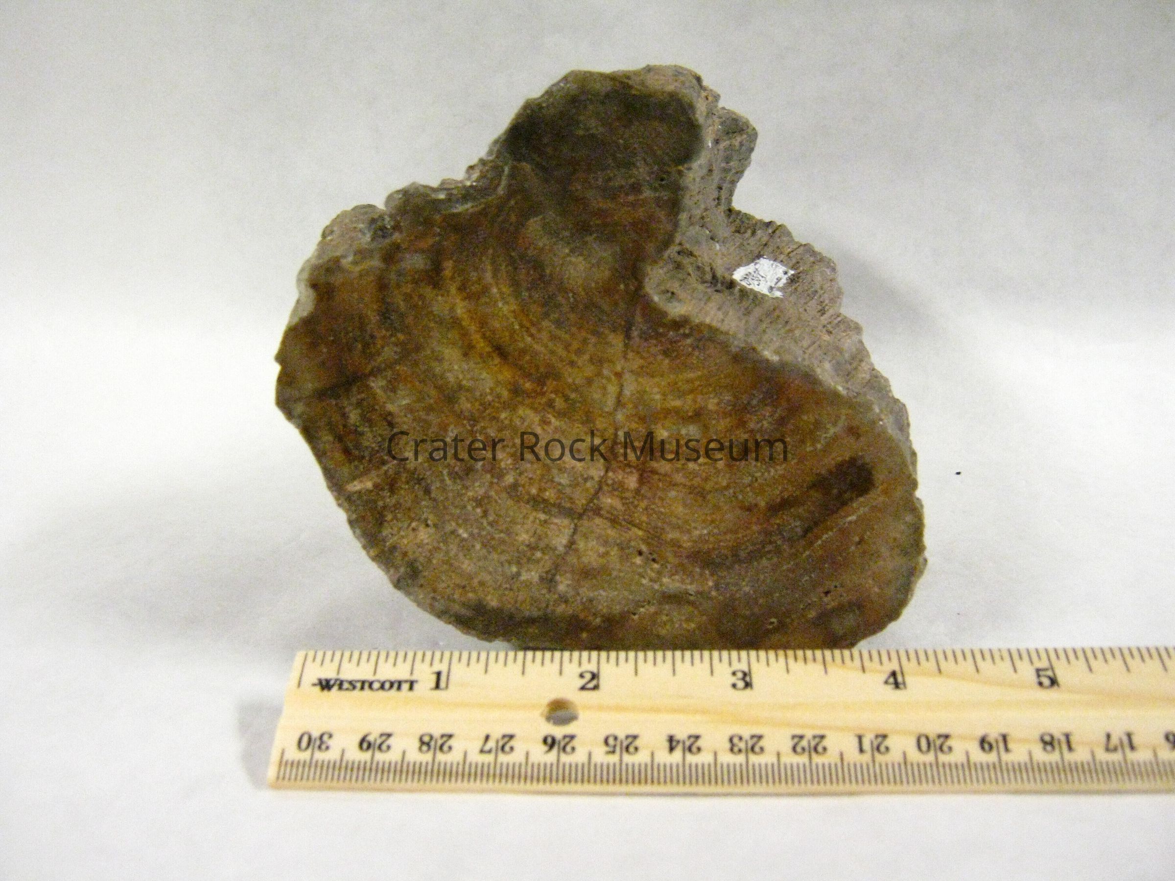 Occurrence: Silicified wood, which is the fossilization and opalization of organic woody matter by the deposition of SiO2 in a anaerobic environment to prevent decay. This means that the wood must somehow be buried in an oxygen free enviroment, possibly in the silt-laden river or the bottom of a lake or buried by volcanic ash or related volcanic mudflow. The organic material in the wood is then replaced by silica (SiO2), other minerals determined its colors.