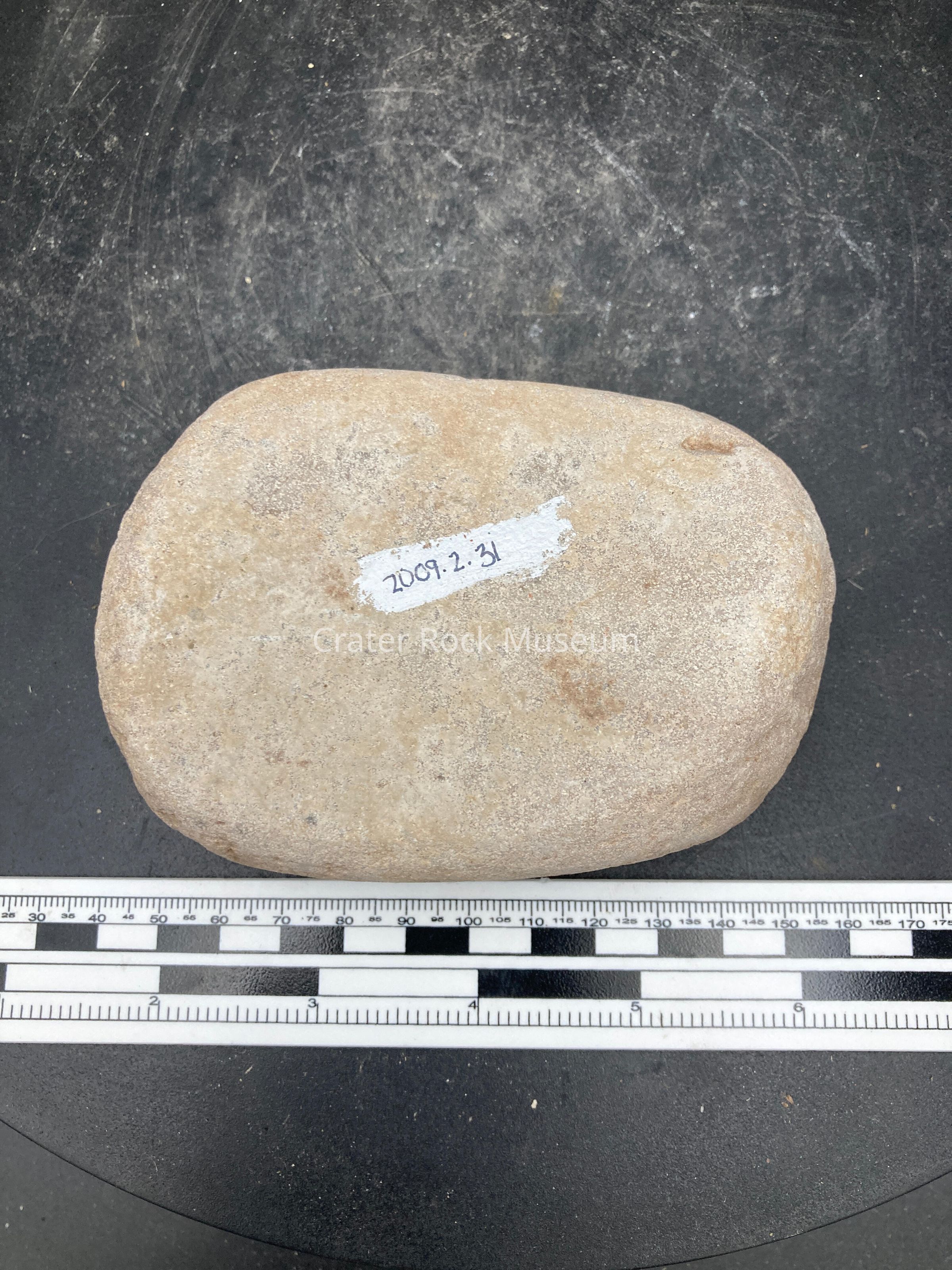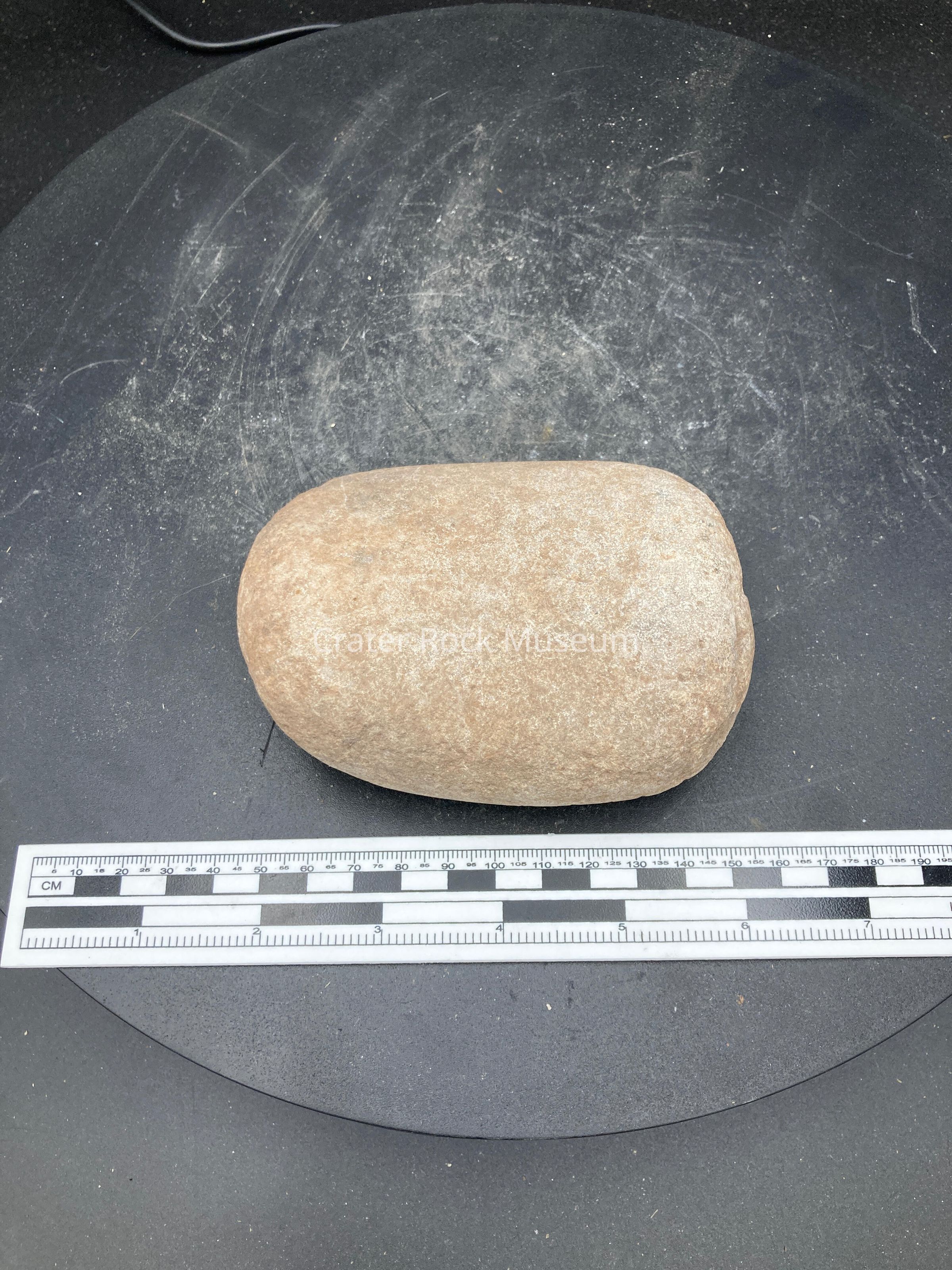 Description: Flat tan peach rock. Mano.