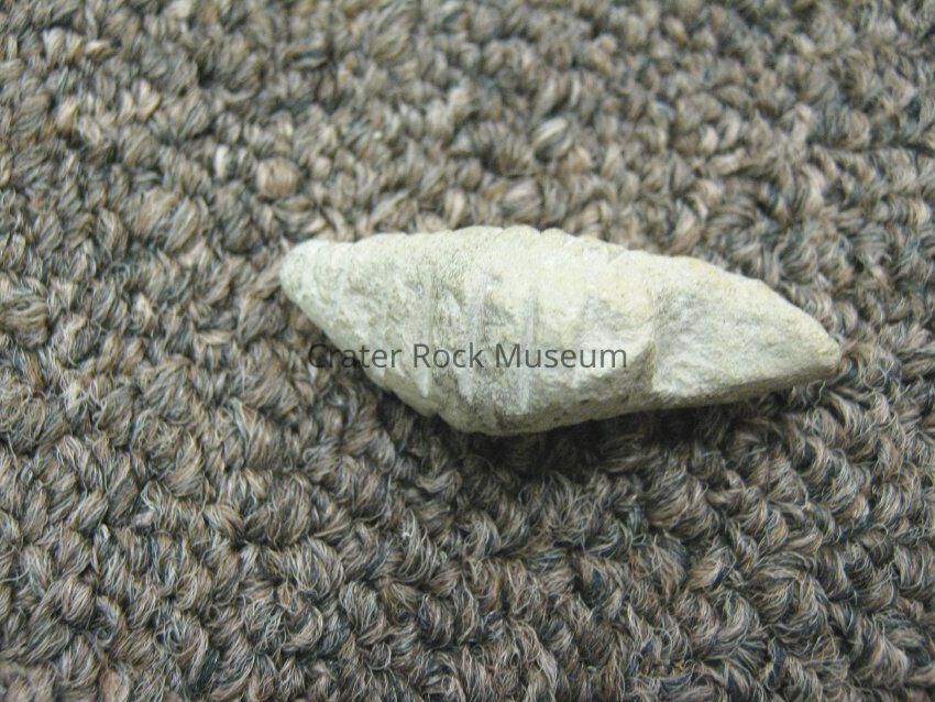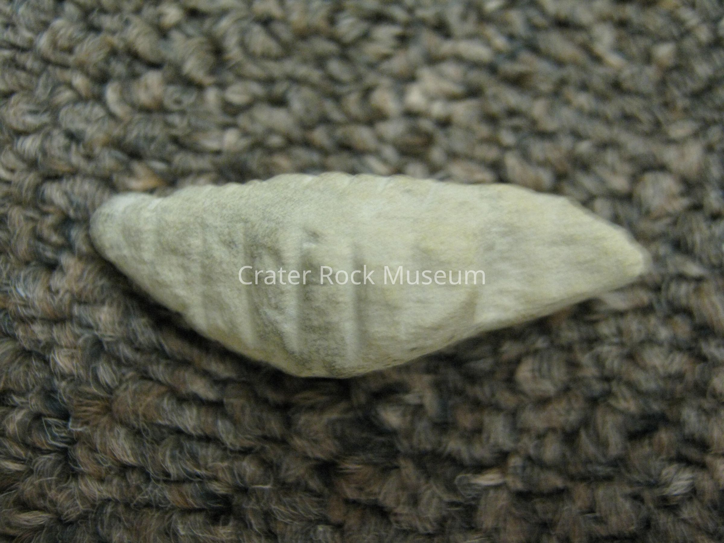 Description: Sea shell shaped hard clay object with lines made in it for keeping track of time or a calender.