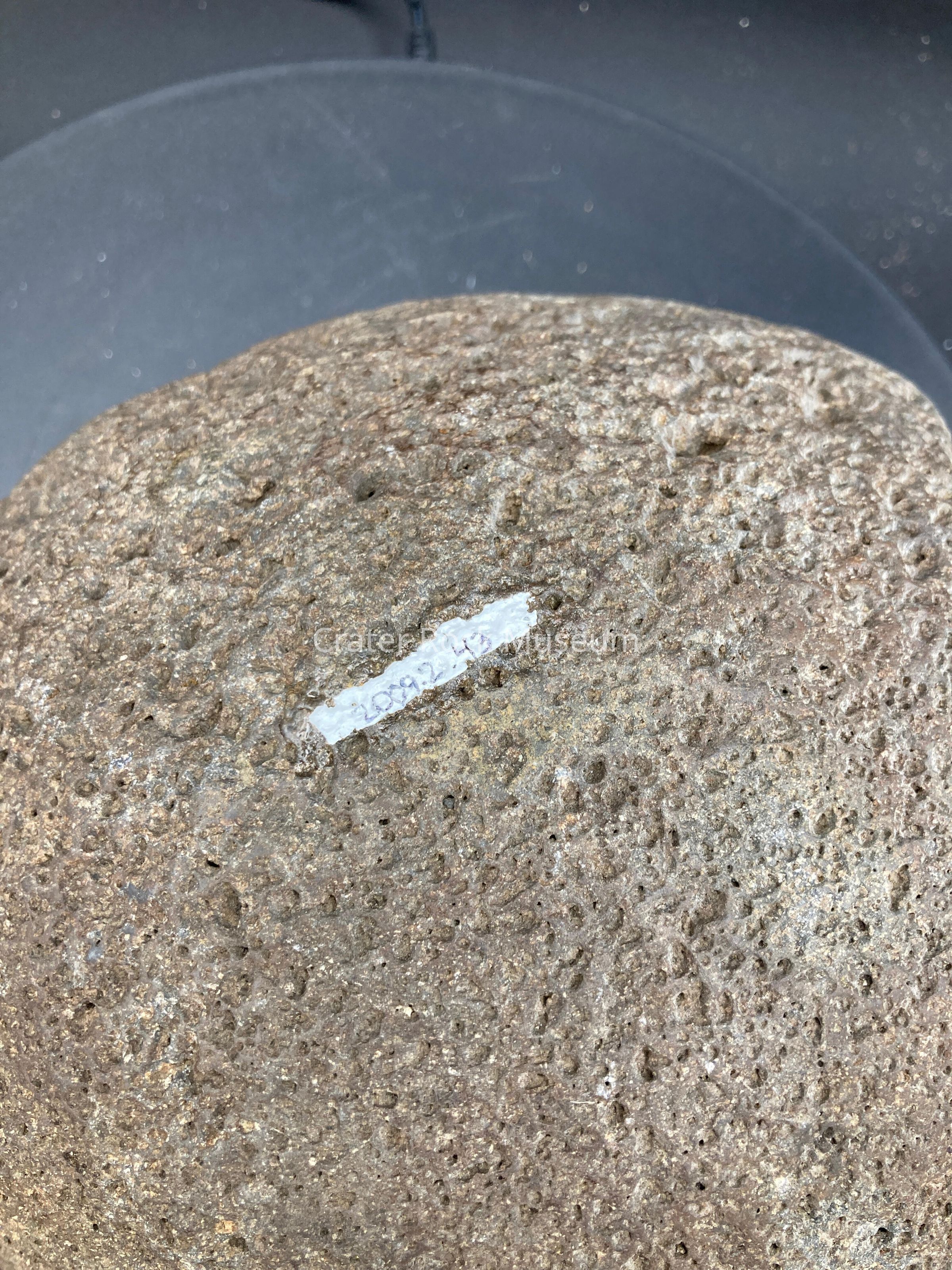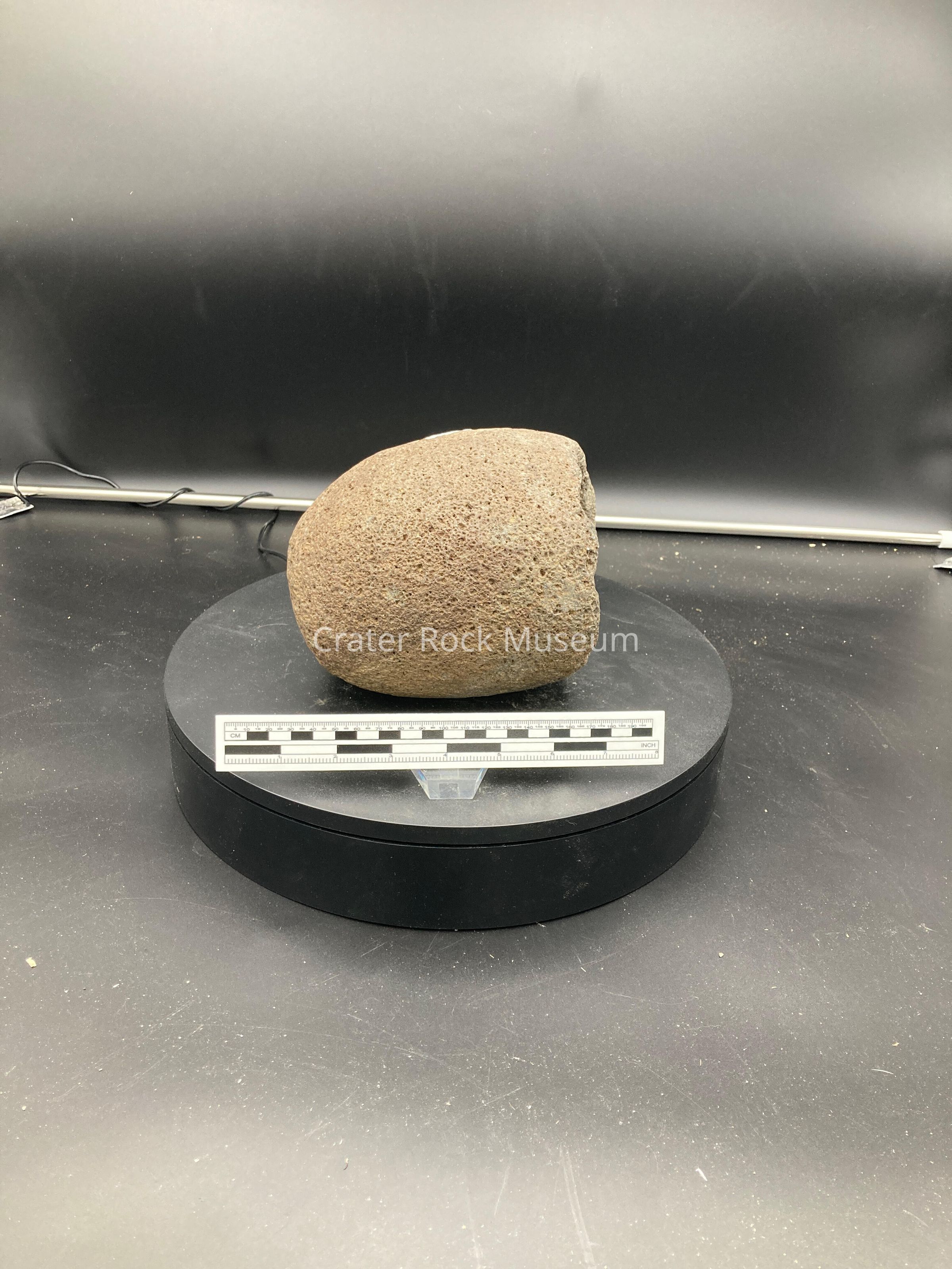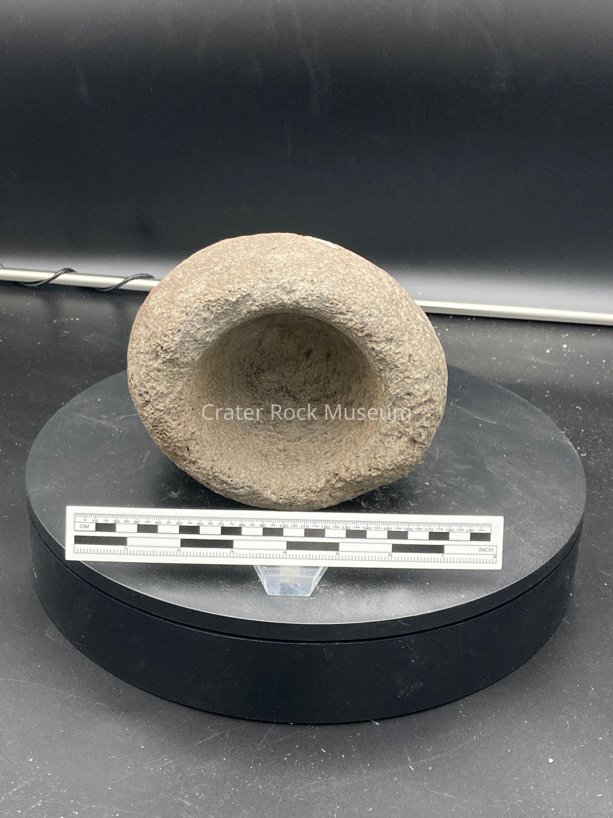 Description: dark gray/ brown bowl almost egg shaped if entire rock was intact.
