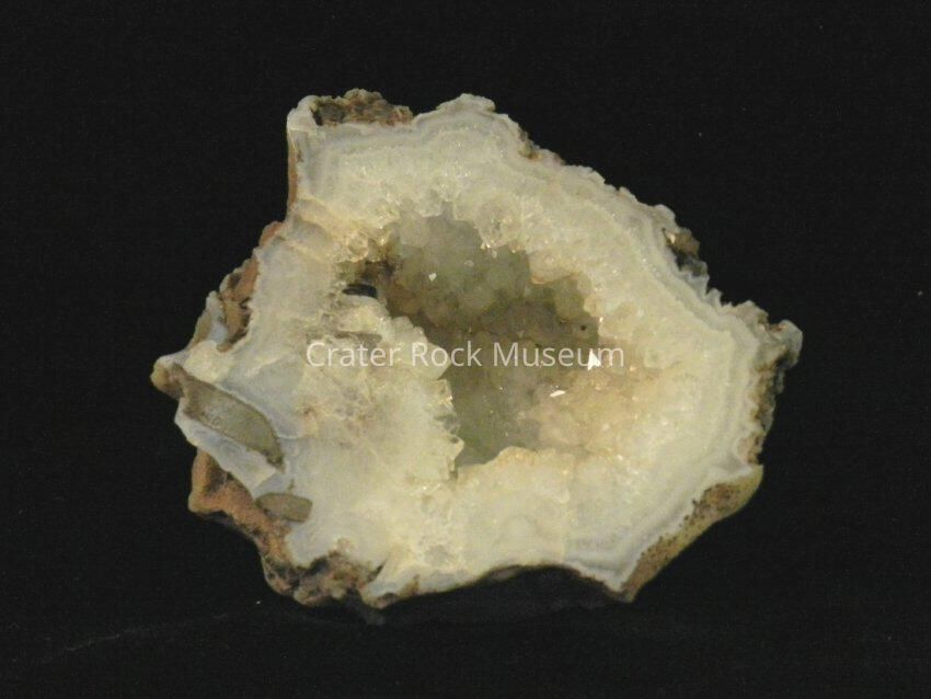Description: Rocky, cratered back with polished face. Translucent white banding with hollow crystalline structure.Collection