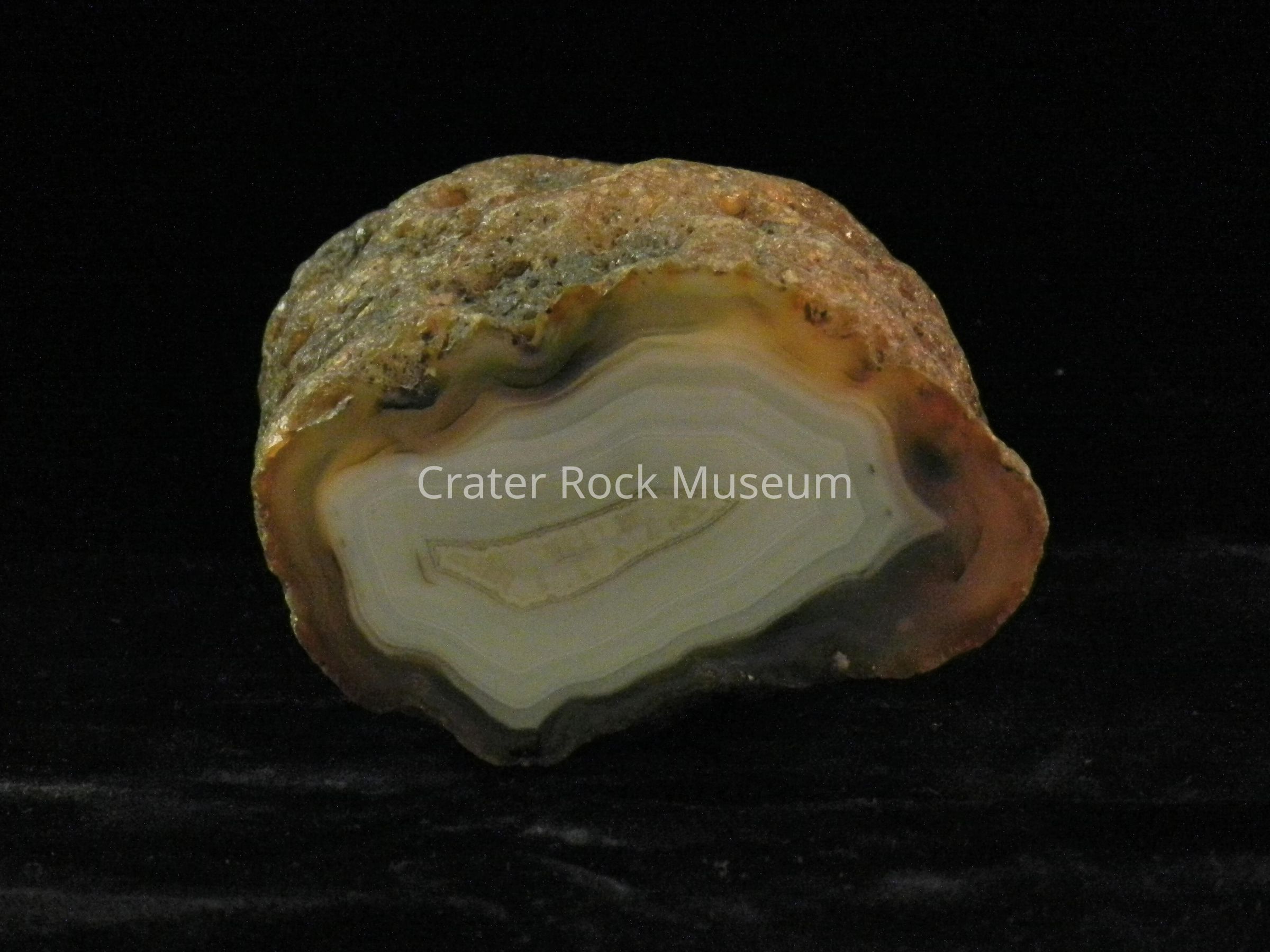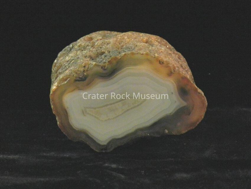 Description: Long cylindrical "back" with polished face. Transparent reddish-orange outside banding with a white and cream banded center.Collection
