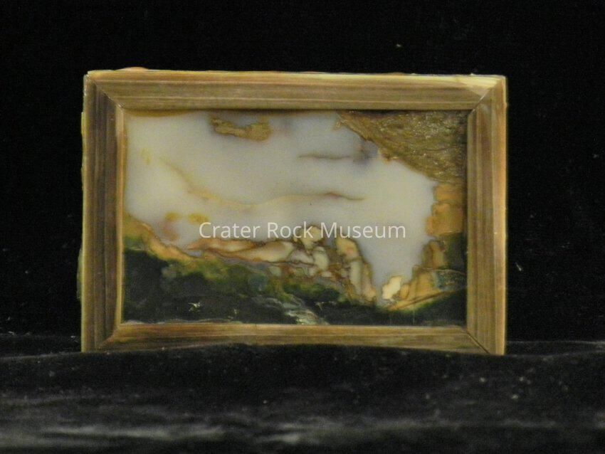 Description: Rectangular (in frame) Creamy white in center with green and tans on outer areas.Collection