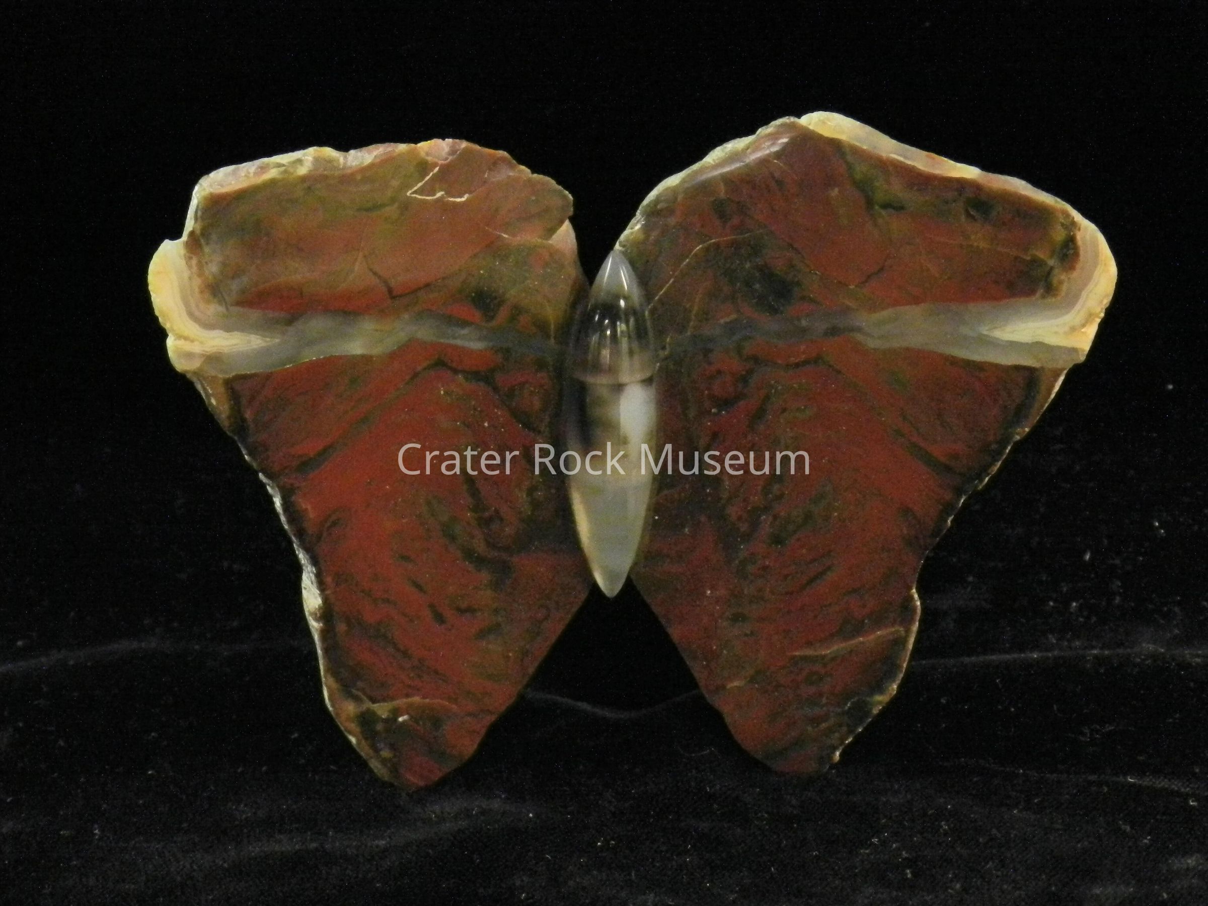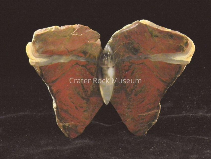 Description: (Butterfly) Red Agate with transparent red with some green and (2) blue-gray streaks.Collection