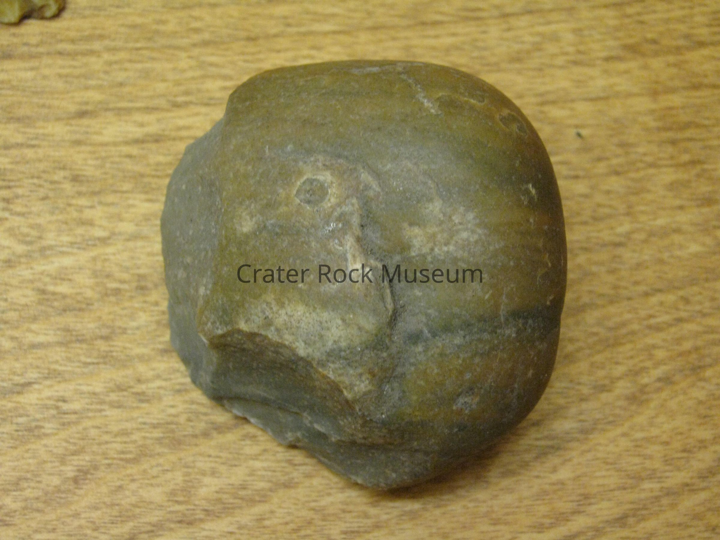 Description: Small boulder shaped rock. Blue on bottom turns orange near the top. Has faint black lines going through it.