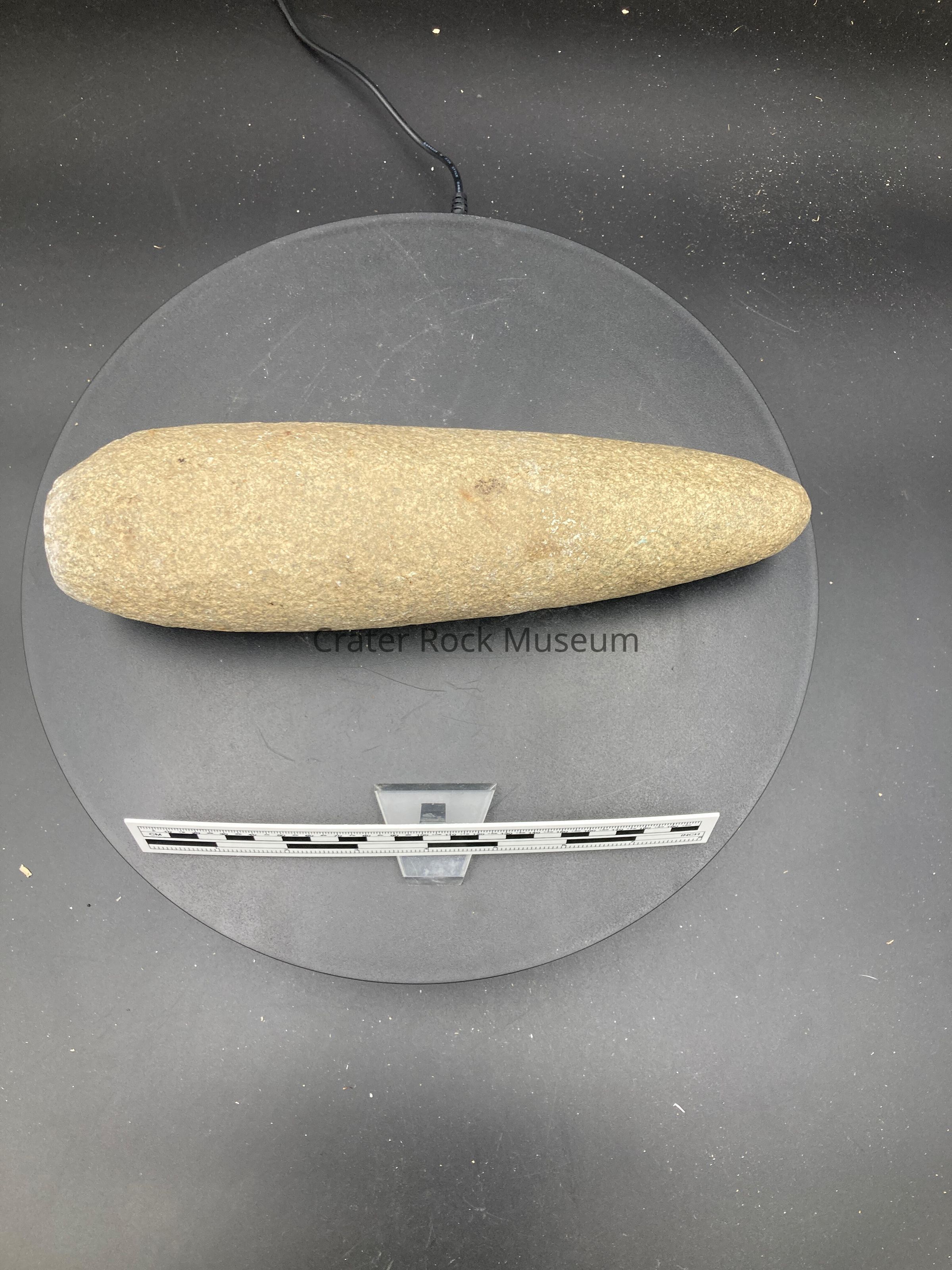 Description: Light tan large grinding stone. Maul- grinding stone.