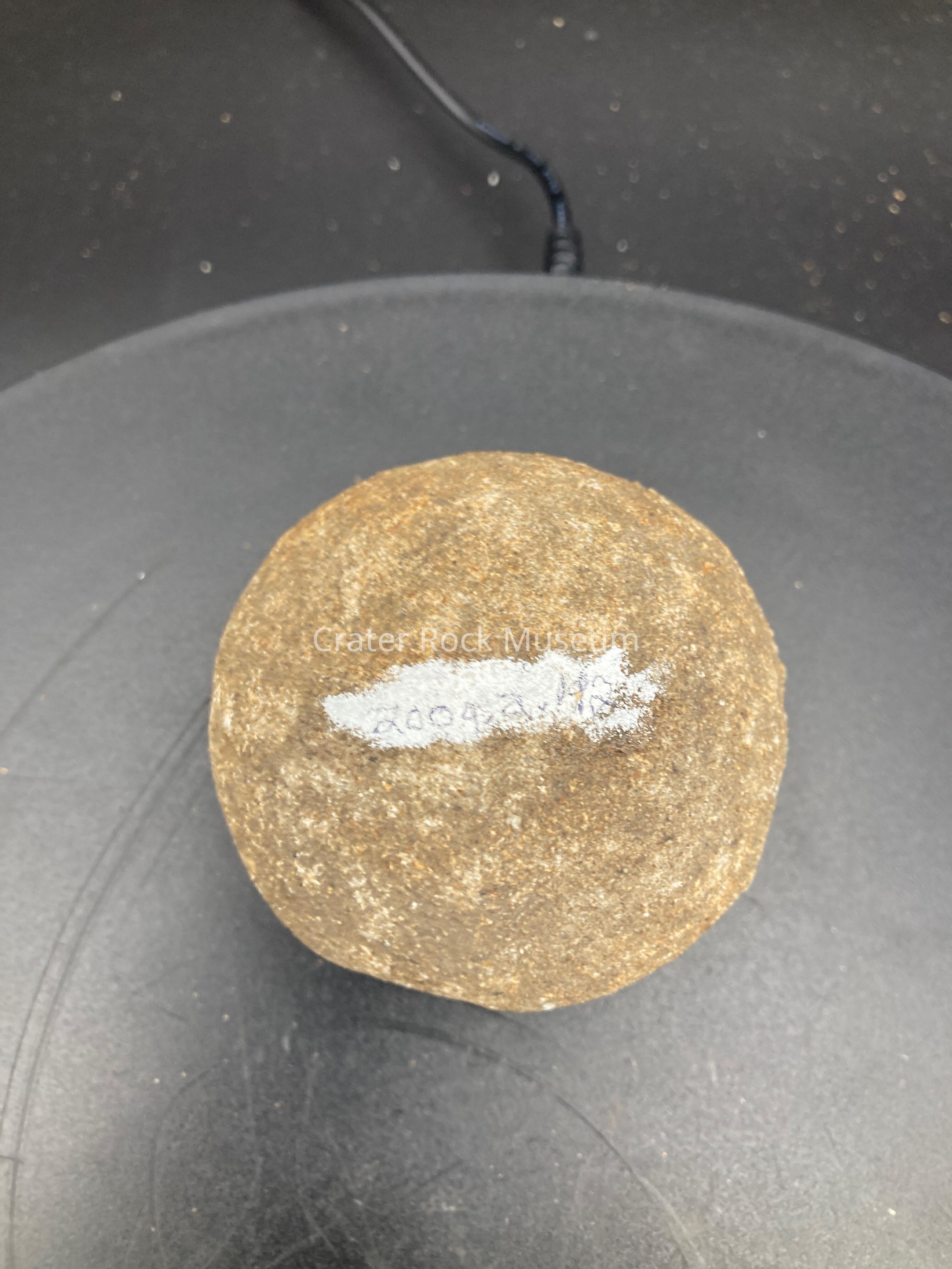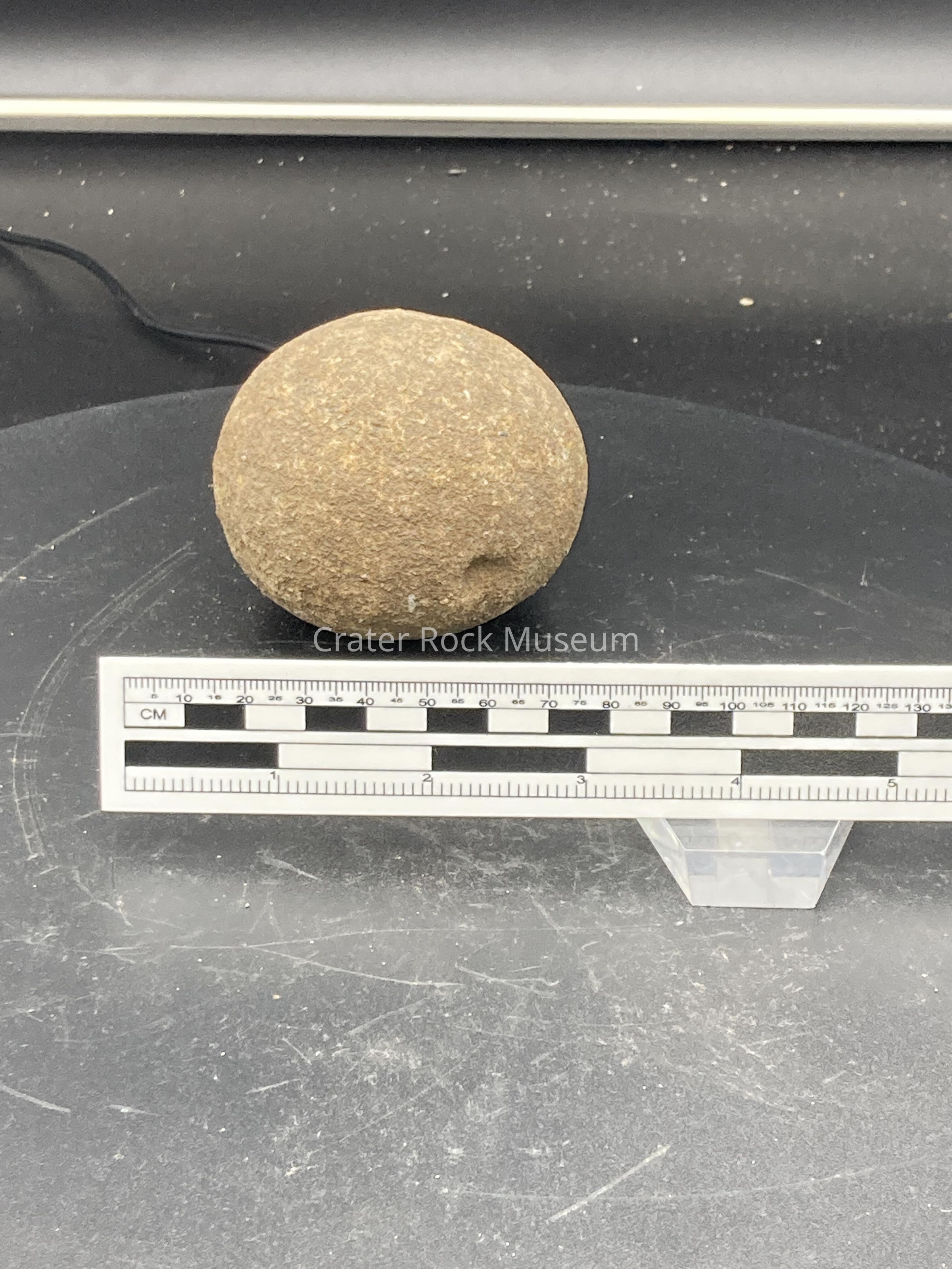 Description: medium size, grey, round stone.