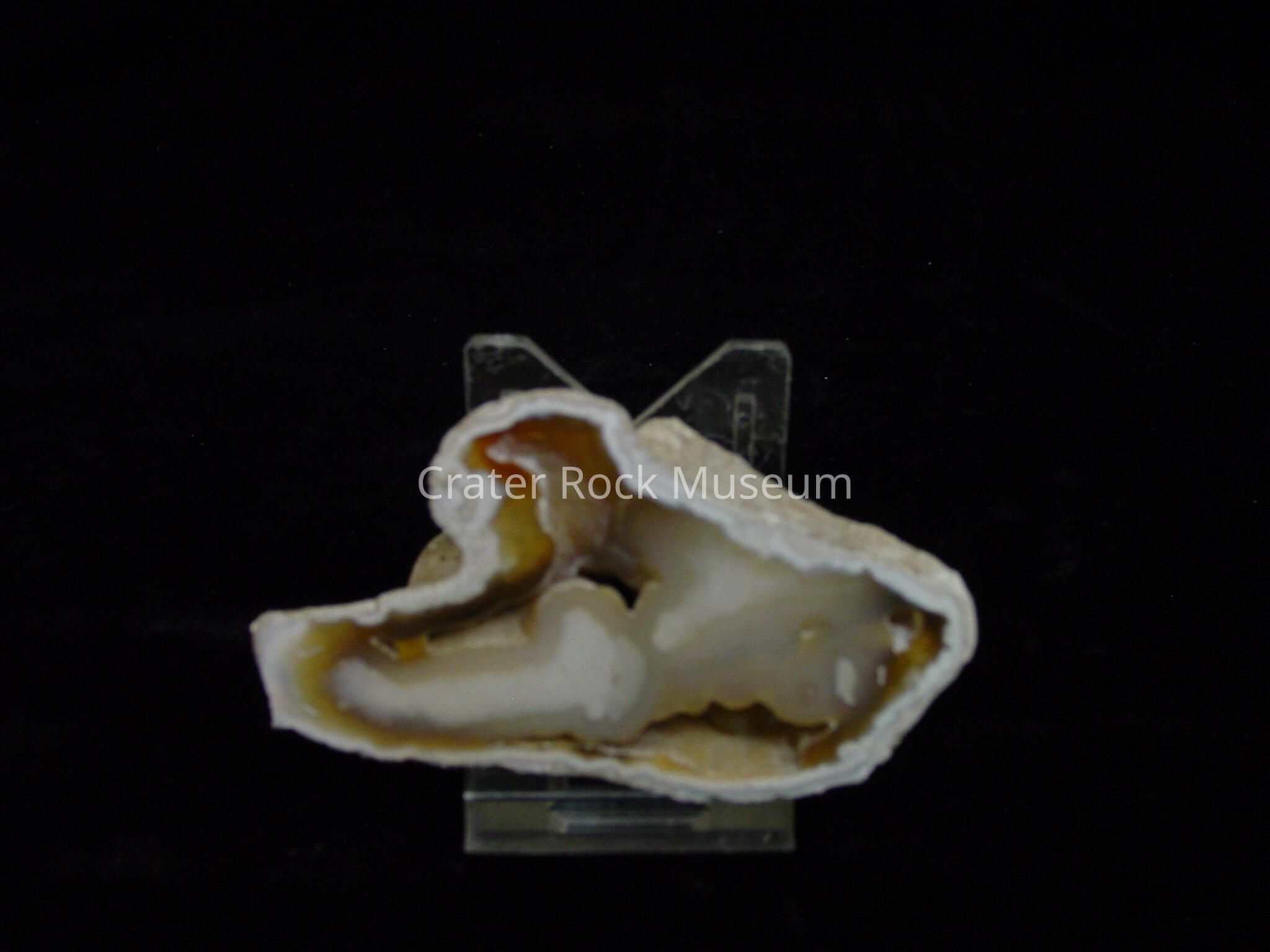 Description: One small agate with an interesting white fill running through. Colors are tan, white and goldCollection