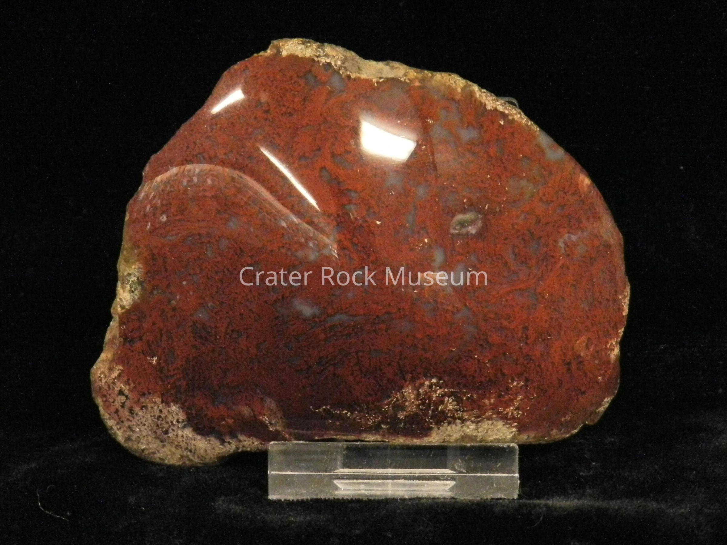 Description: Rounded back with polished convex face. Deep translucent dark red with some smaller areas of blue-gray.Collection