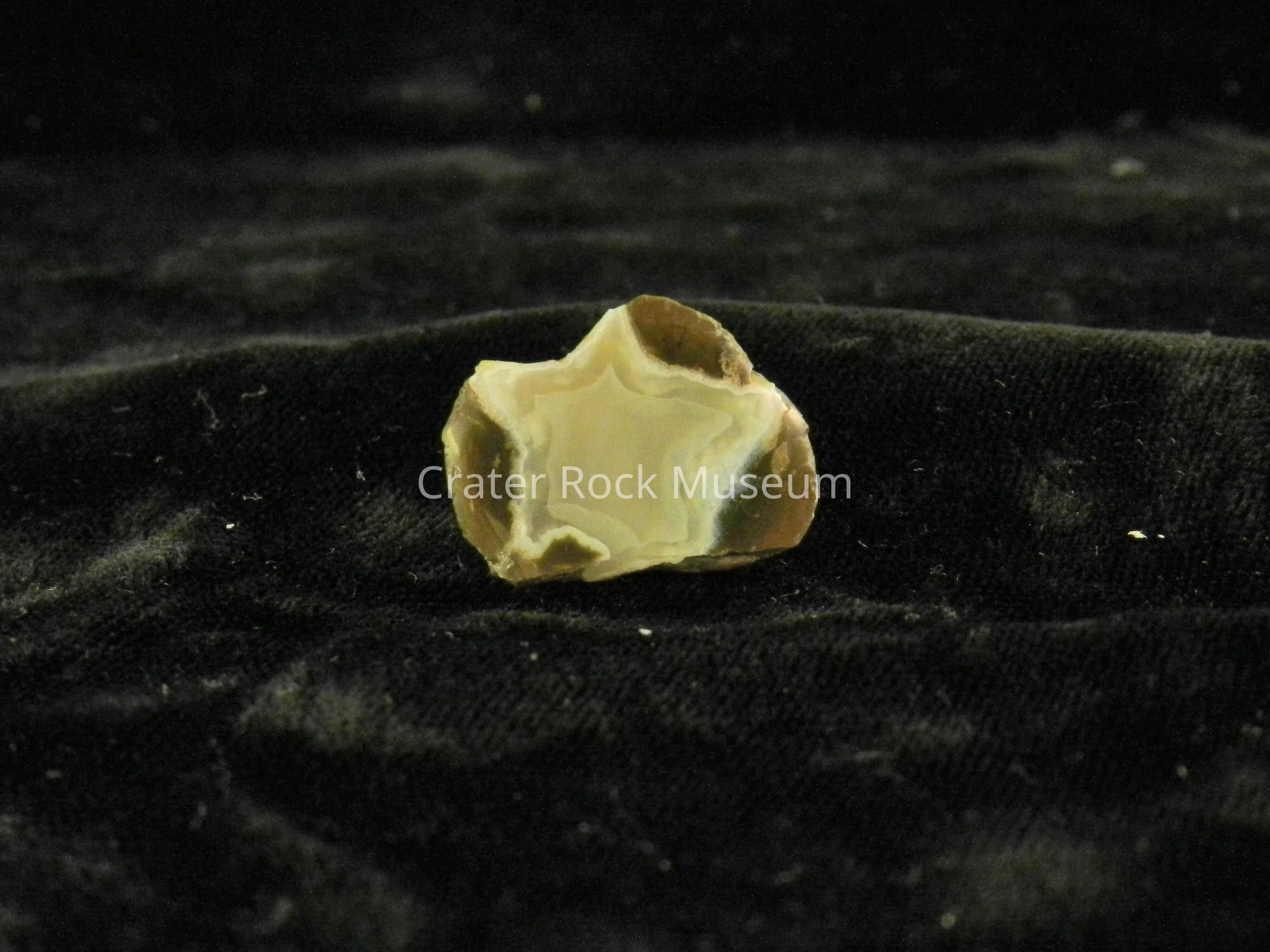 Description: (Very small), rough, rounded back with translucent brown outer regions and a transparent creamy white center with one band.Collection