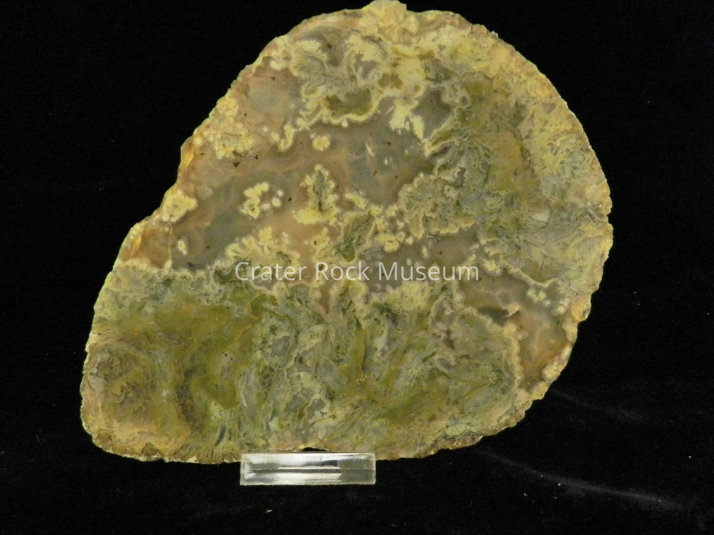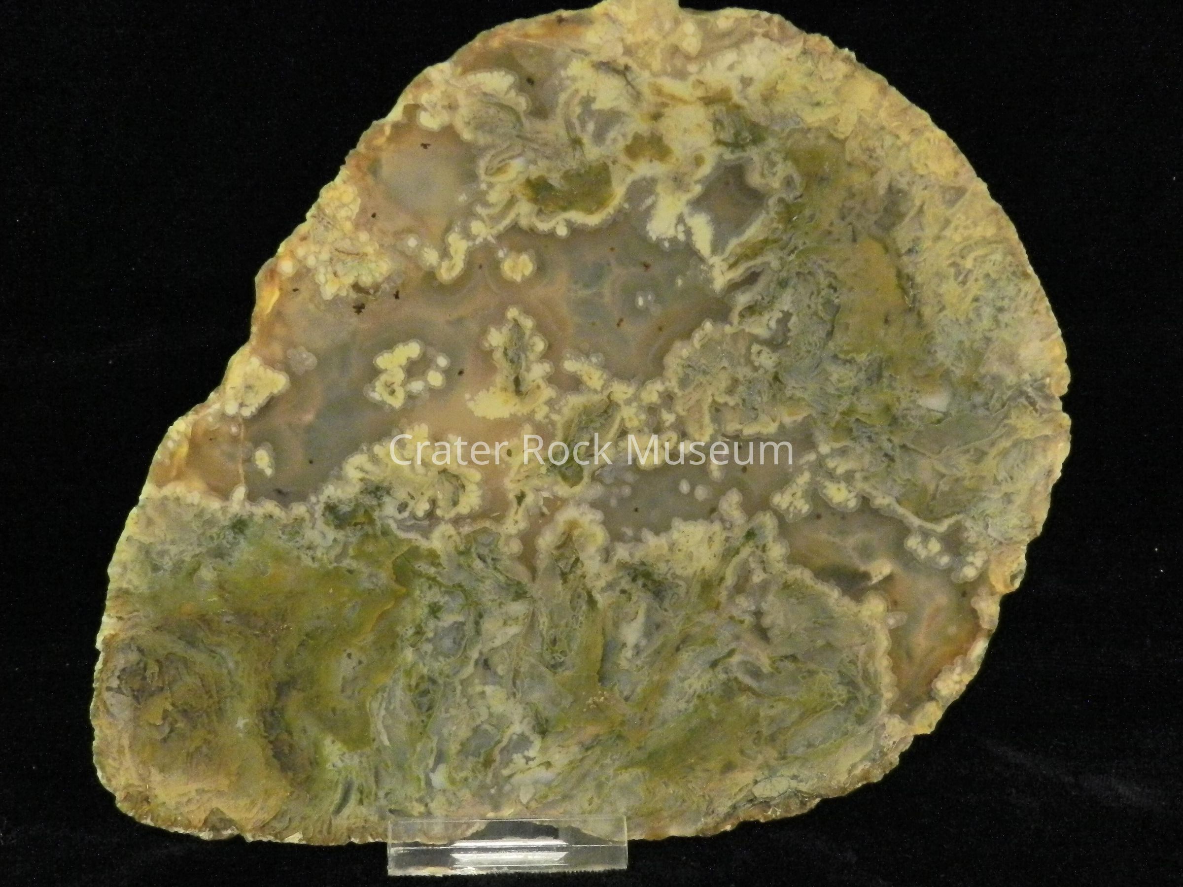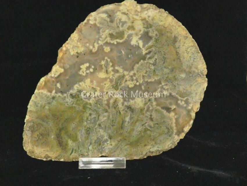 Description: Flat, bumpy (nodules) back with polished face. Transparent brown, greens, grays and some orange in a swirl pattern.Collection