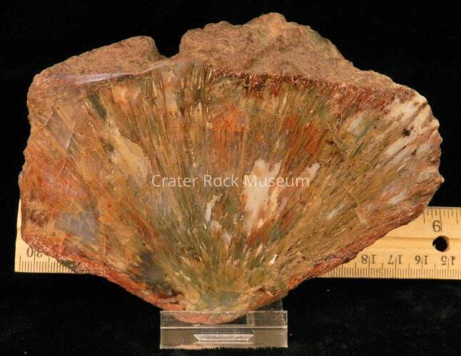 Description: Thick, rough back with polished face. Translucent reds, greens, tans, whites and blue-gray, all mixed within one large splay.