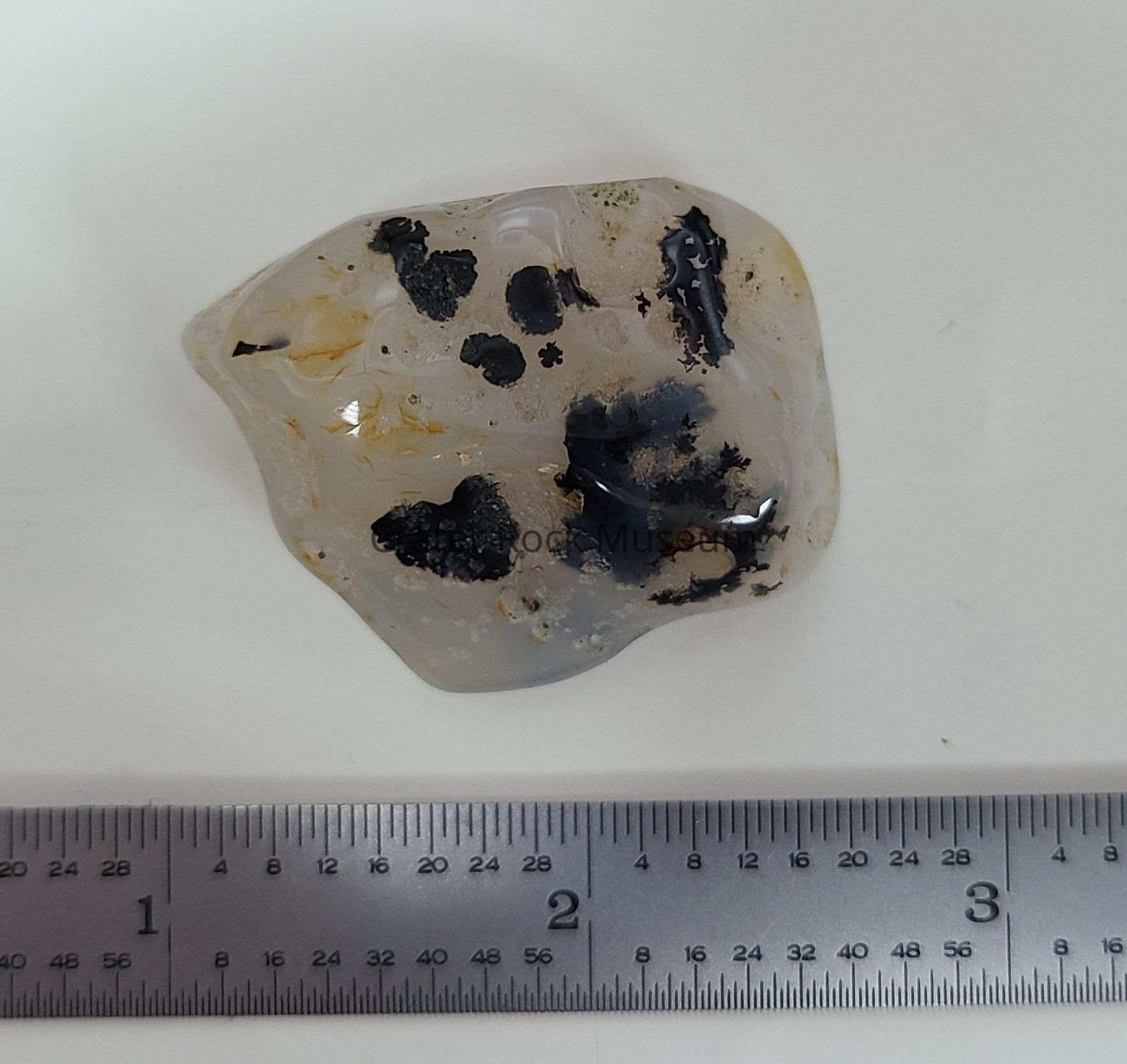 [B] white polished nodule with black dendritic sprays and some yellow spraysCollection