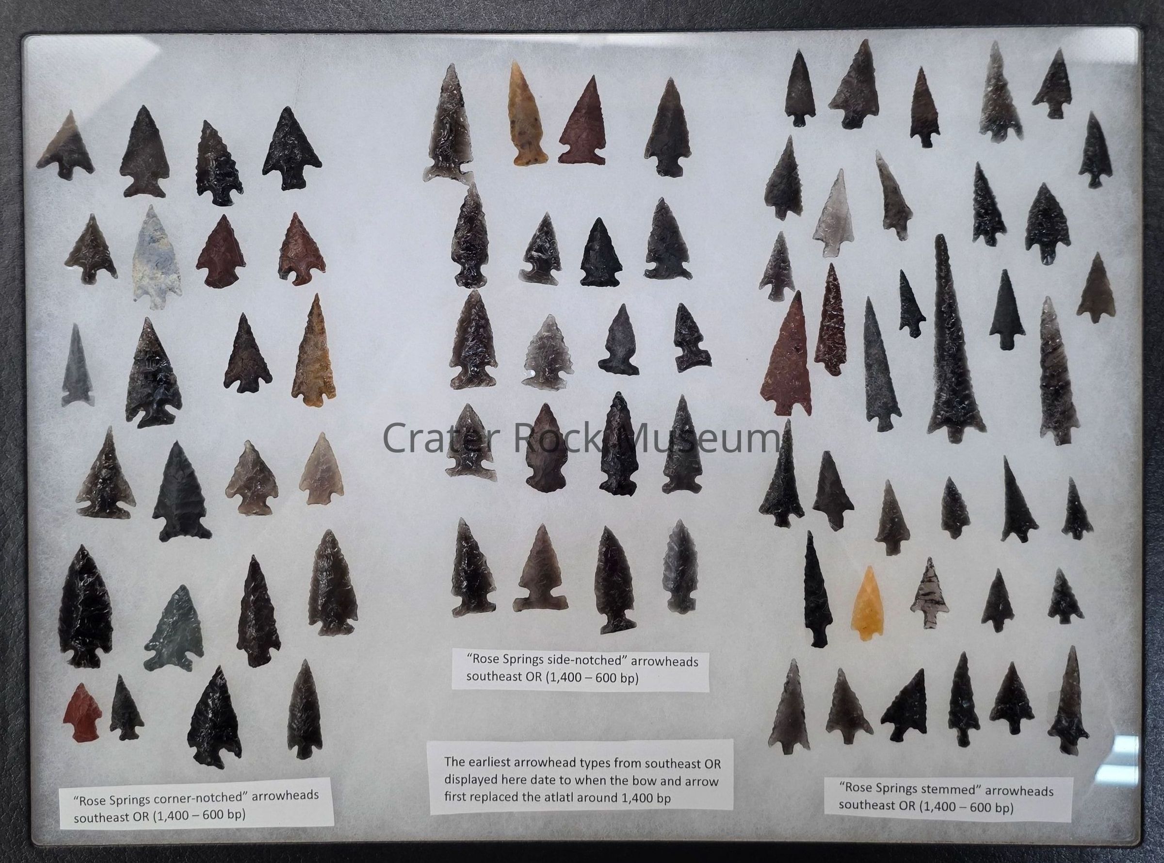 82 obsidian and jasper projectile points- 24 Rose Spring corner notch, 20 Rose Spring corner notch, and 38 Rose Spring stemmed forms- in an 8"x16" Riker frameCollection