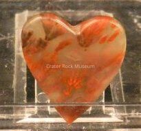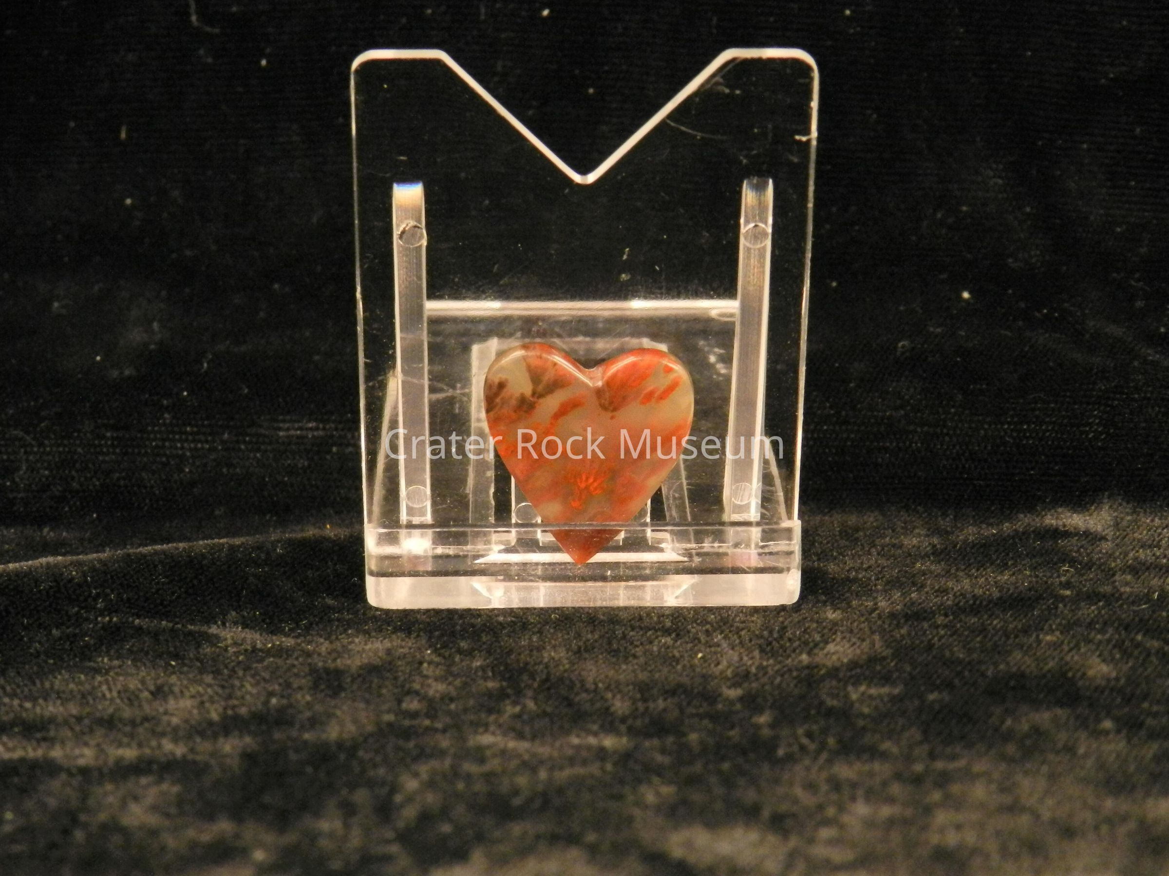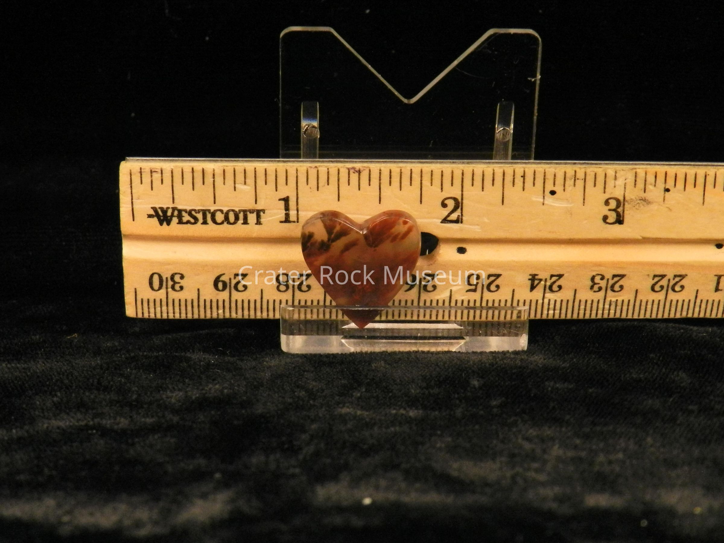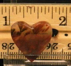 Description: Small, heart shaped with polished face. Translucent dull red with reddish-brown plumes.