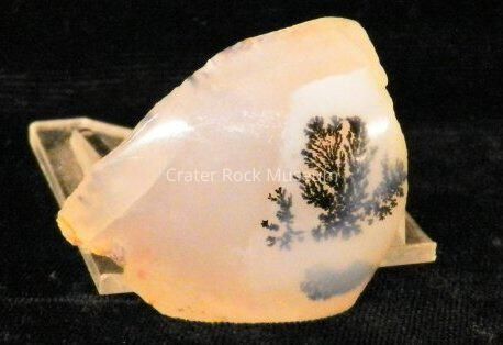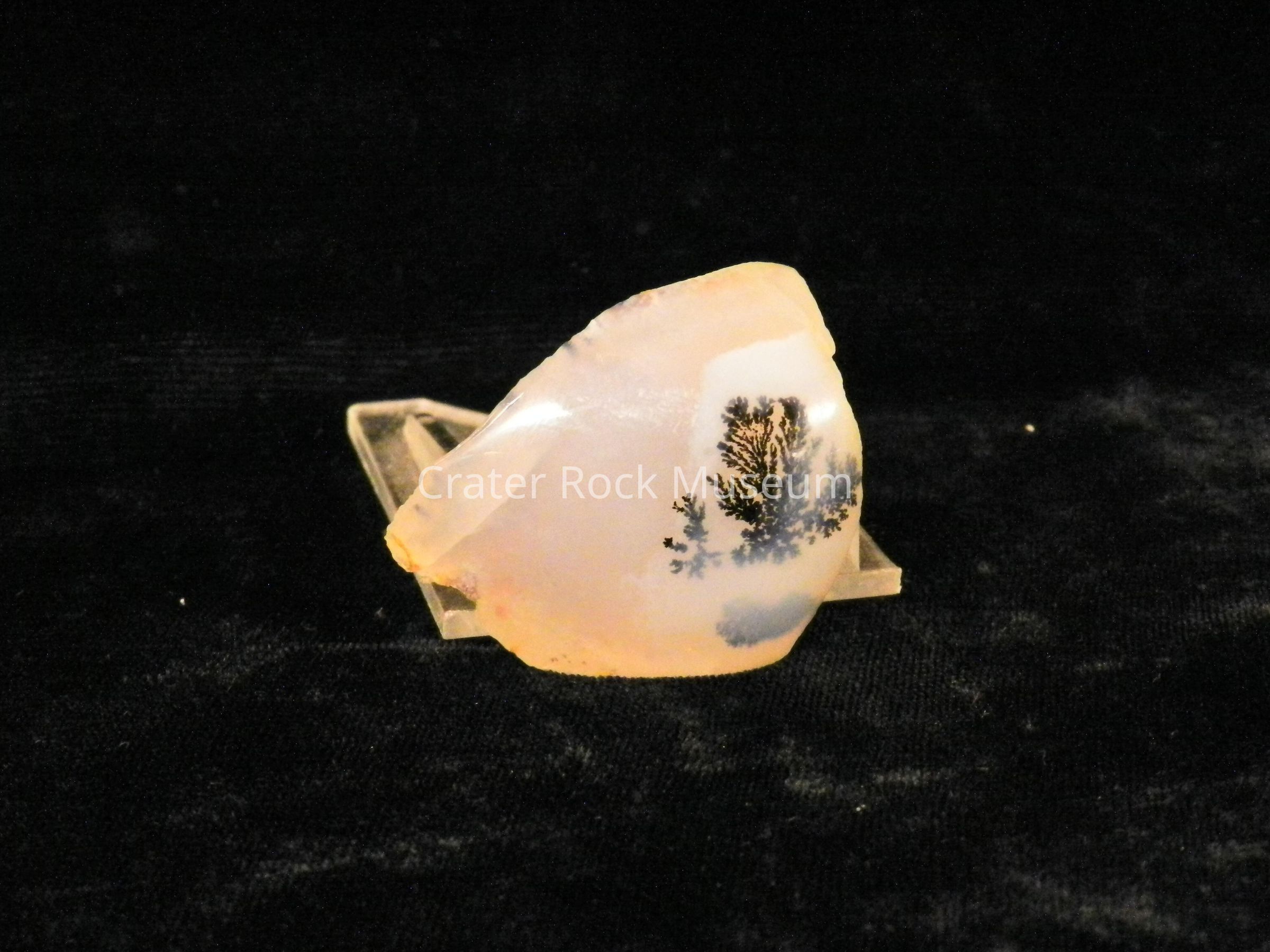 Dendritic agate is a whitish-gray or colorless chalcedony with tree- or fern-like markings known as dendrites. The variety name agate is used for this gem even though it does not exhibit the banding typical of agate.The dendrites in dendritic agate are iron or manganese inclusions, usually brown or black in color. Though they appear organic due to their fern-like structure, they are actually inorganic; they are formed at fine fracture surfaces through crystallization of weathered solutions of neighboring rock.