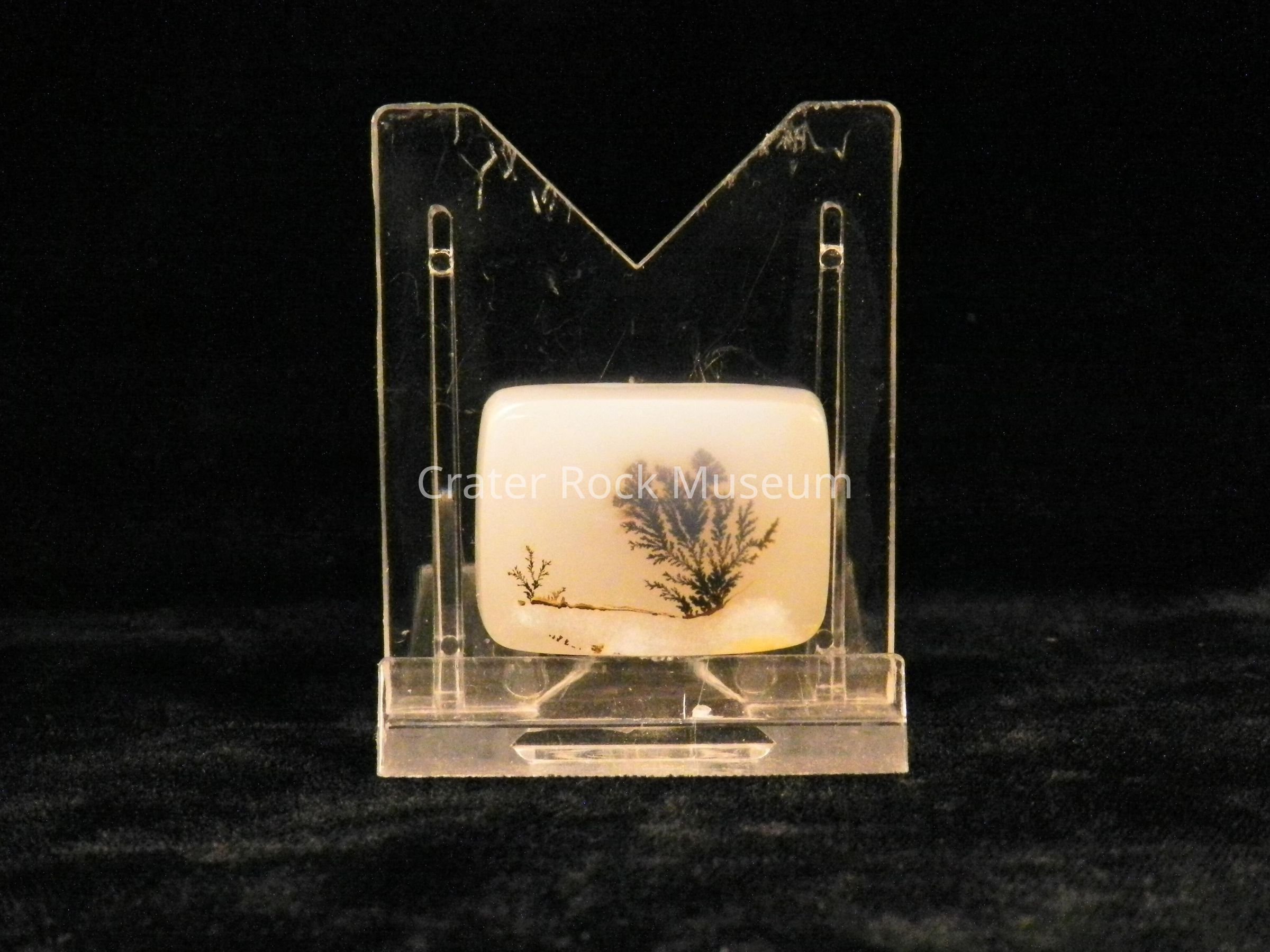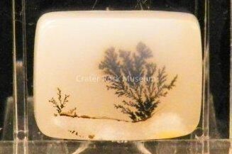 Dendritic agate is a whitish-gray or colorless chalcedony with tree- or fern-like markings known as dendrites. The variety name agate is used for this gem even though it does not exhibit the banding typical of agate.The dendrites in dendritic agate are iron or manganese inclusions, usually brown or black in color. Though they appear organic due to their fern-like structure, they are actually inorganic; they are formed at fine fracture surfaces through crystallization of weathered solutions of neighboring rock.