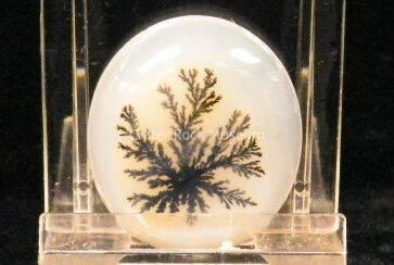 Dendritic agate is a whitish-gray or colorless chalcedony with tree- or fern-like markings known as dendrites. The variety name agate is used for this gem even though it does not exhibit the banding typical of agate.The dendrites in dendritic agate are iron or manganese inclusions, usually brown or black in color. Though they appear organic due to their fern-like structure, they are actually inorganic; they are formed at fine fracture surfaces through crystallization of weathered solutions of neighboring rock.
