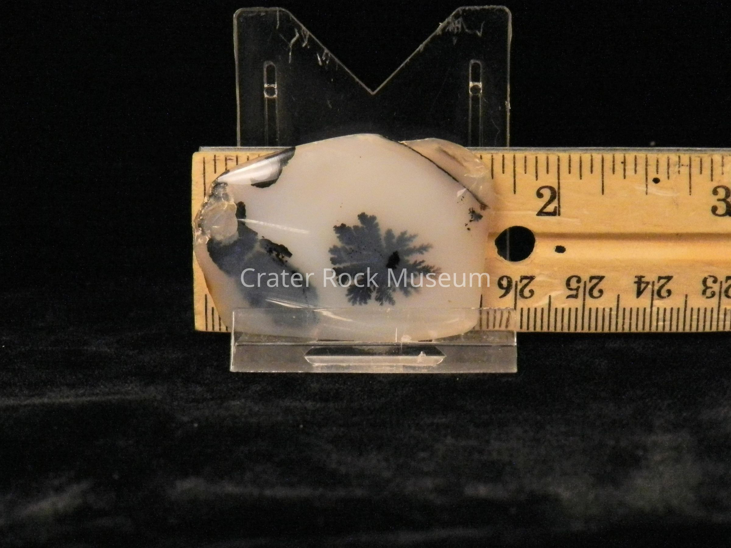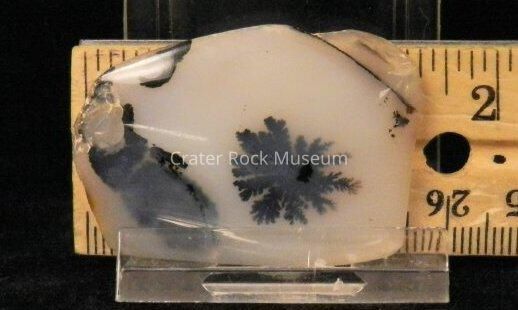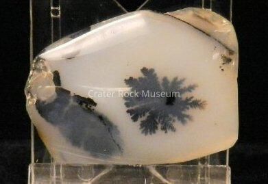 Dendritic agate is a whitish-gray or colorless chalcedony with tree- or fern-like markings known as dendrites. The variety name agate is used for this gem even though it does not exhibit the banding typical of agate.The dendrites in dendritic agate are iron or manganese inclusions, usually brown or black in color. Though they appear organic due to their fern-like structure, they are actually inorganic; they are formed at fine fracture surfaces through crystallization of weathered solutions of neighboring rock.